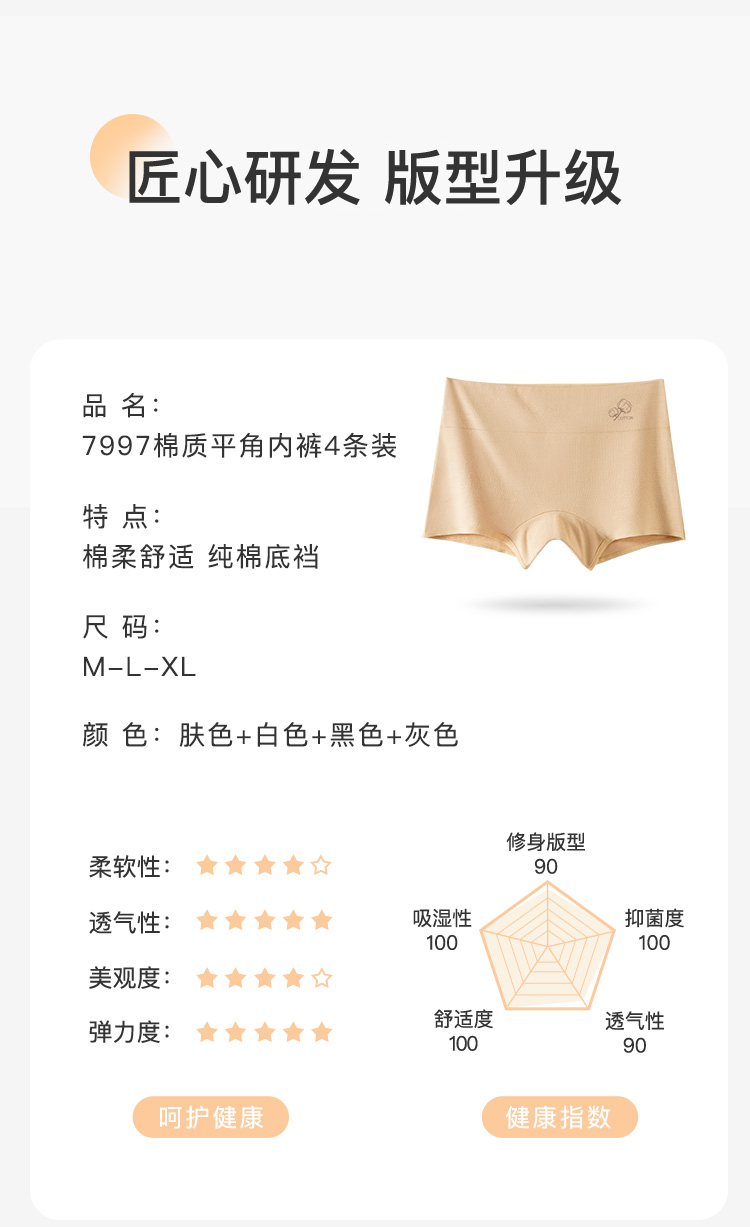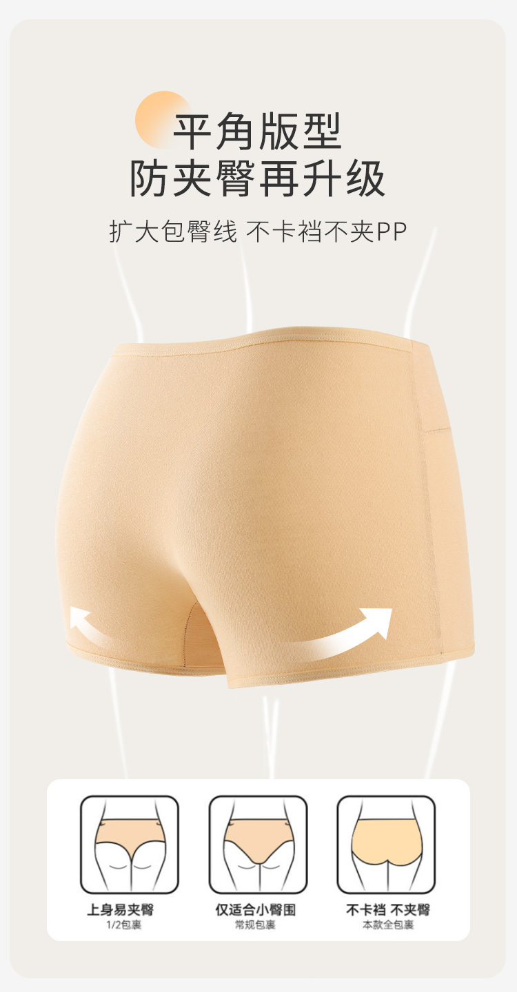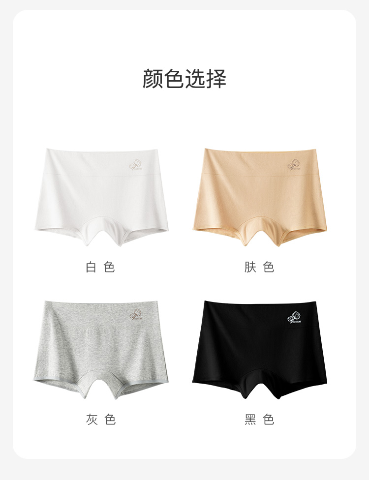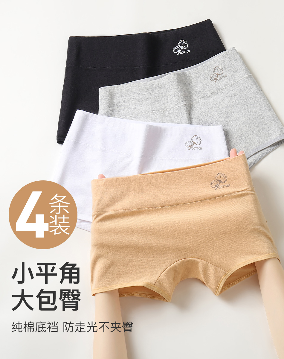 【4条装】安全裤打底裤二合一平角防走光内裤女100%纯棉裆7997棉质平角内裤4条装