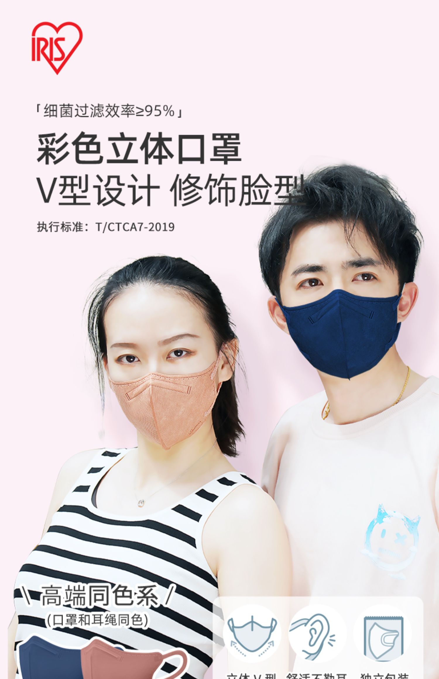爱丽思3d立体彩色宽耳带口罩女防尘一次性透气
