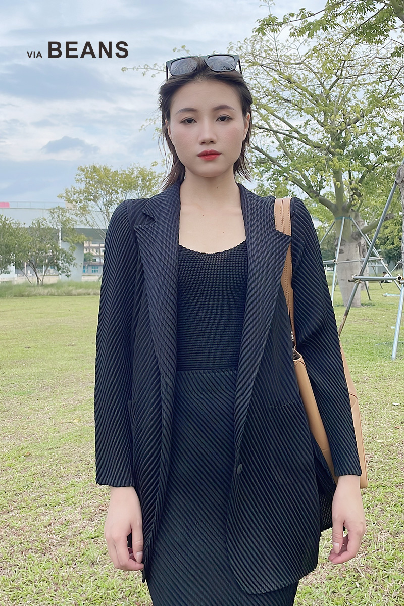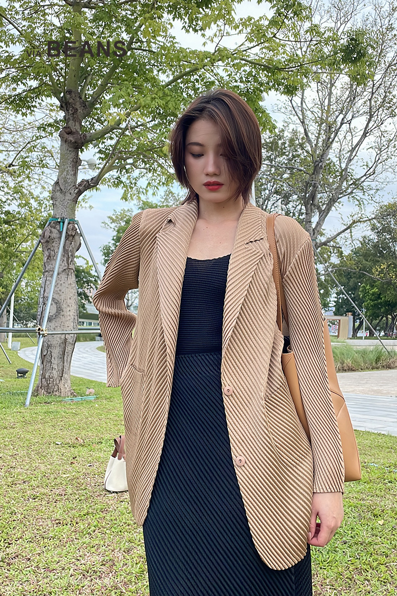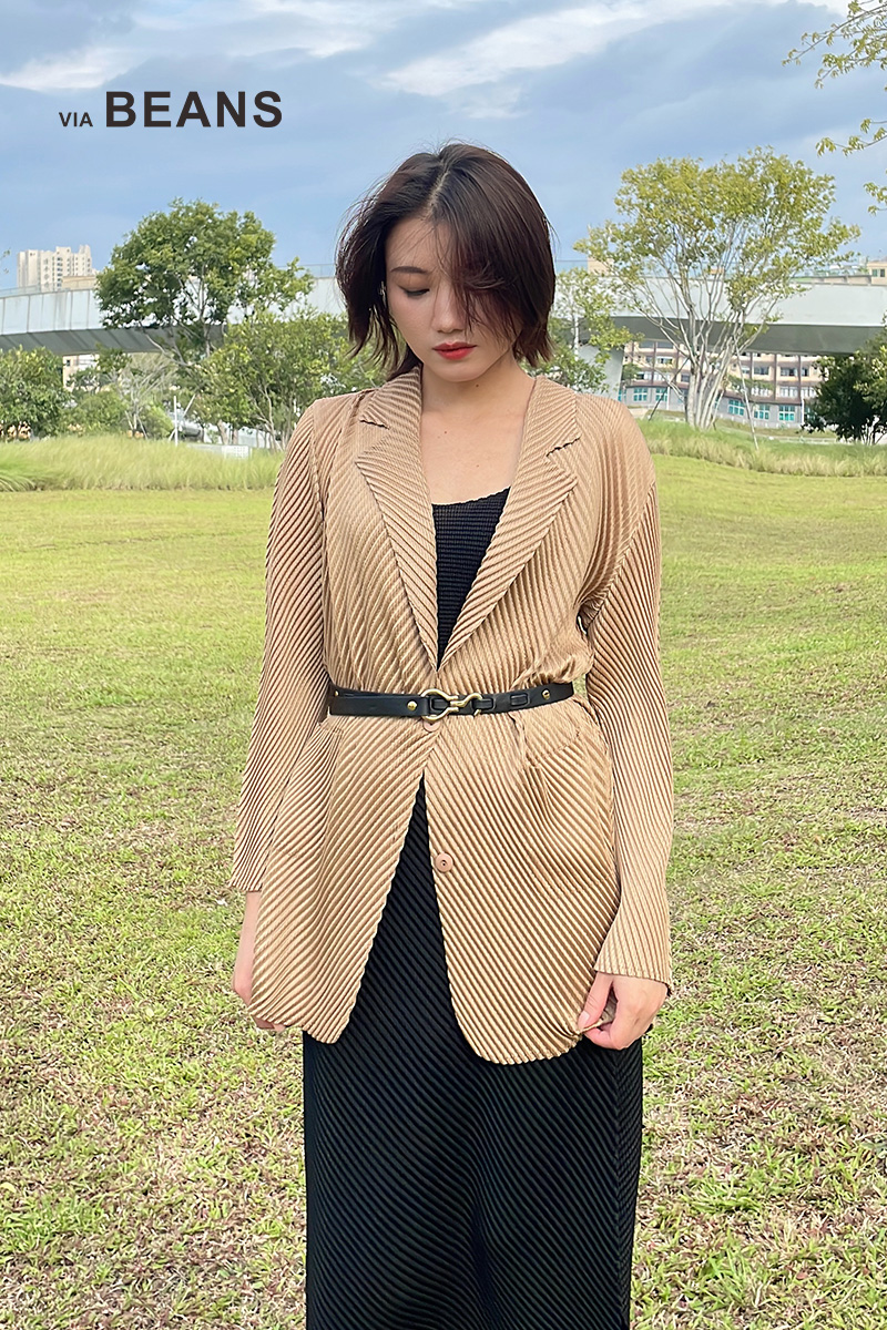 反领双插袋斜纹褶皱外套 9421010035