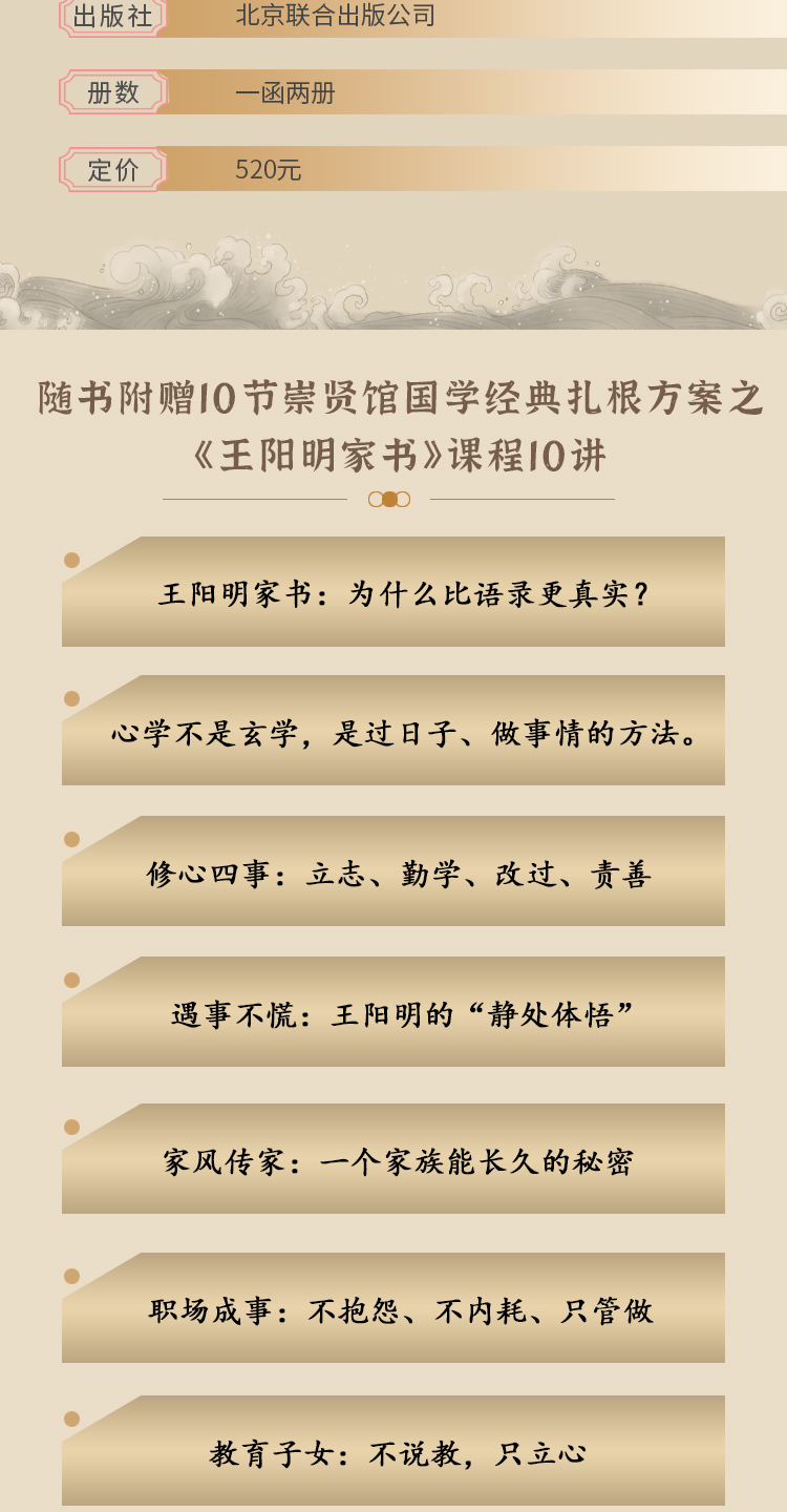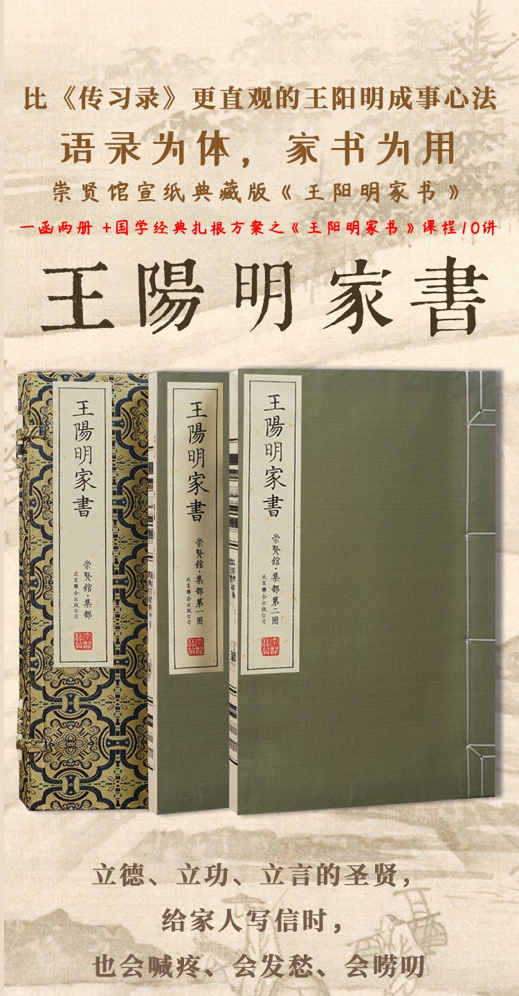 【崇贤宝笈】宣纸—王阳明家书(一函两册)限量编号繁体竖排 知名画家郭有河先生“阳明” 系列主题画作随书附赠崇贤馆国学经典扎根方案 之《王阳明家书》课程10讲