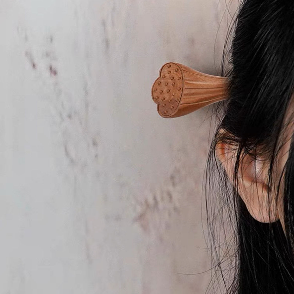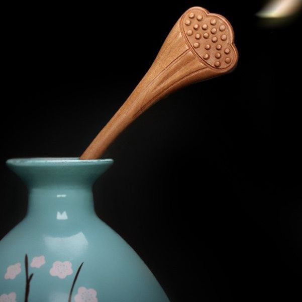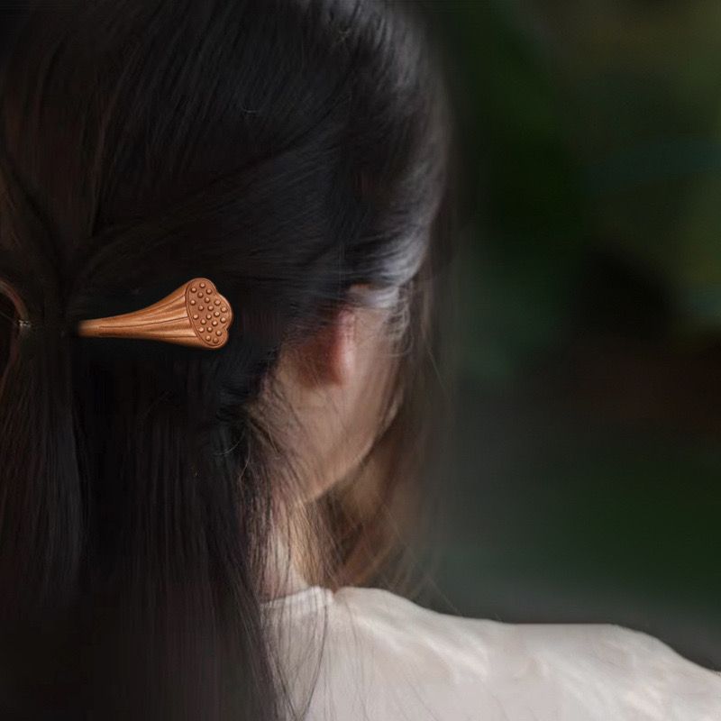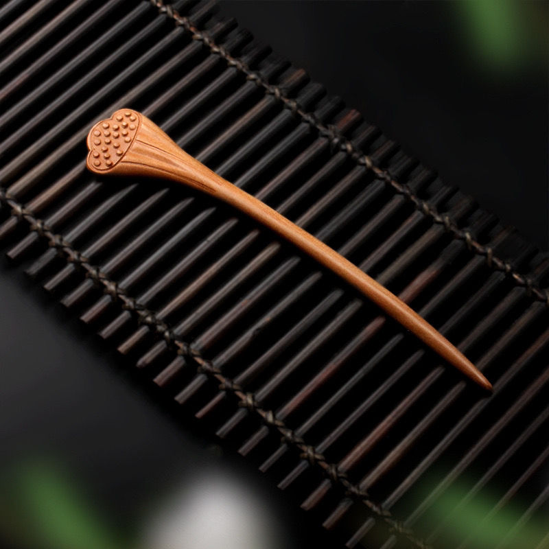 莲子清如水 早春莲蓬桃木簪子发簪可爱大气风盘发神器