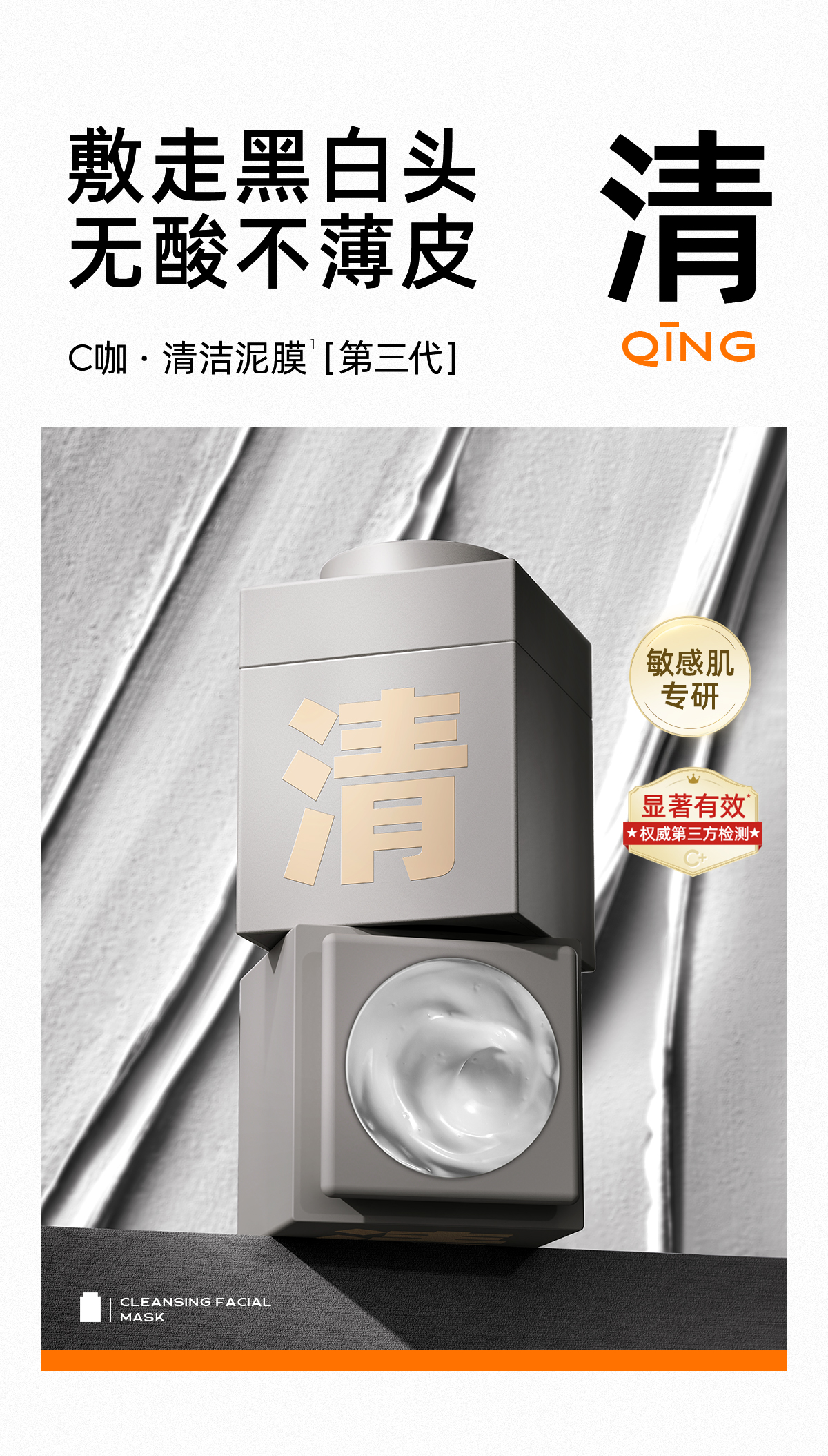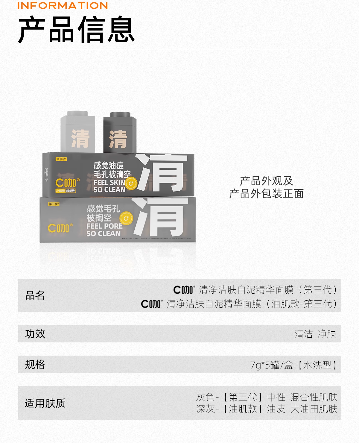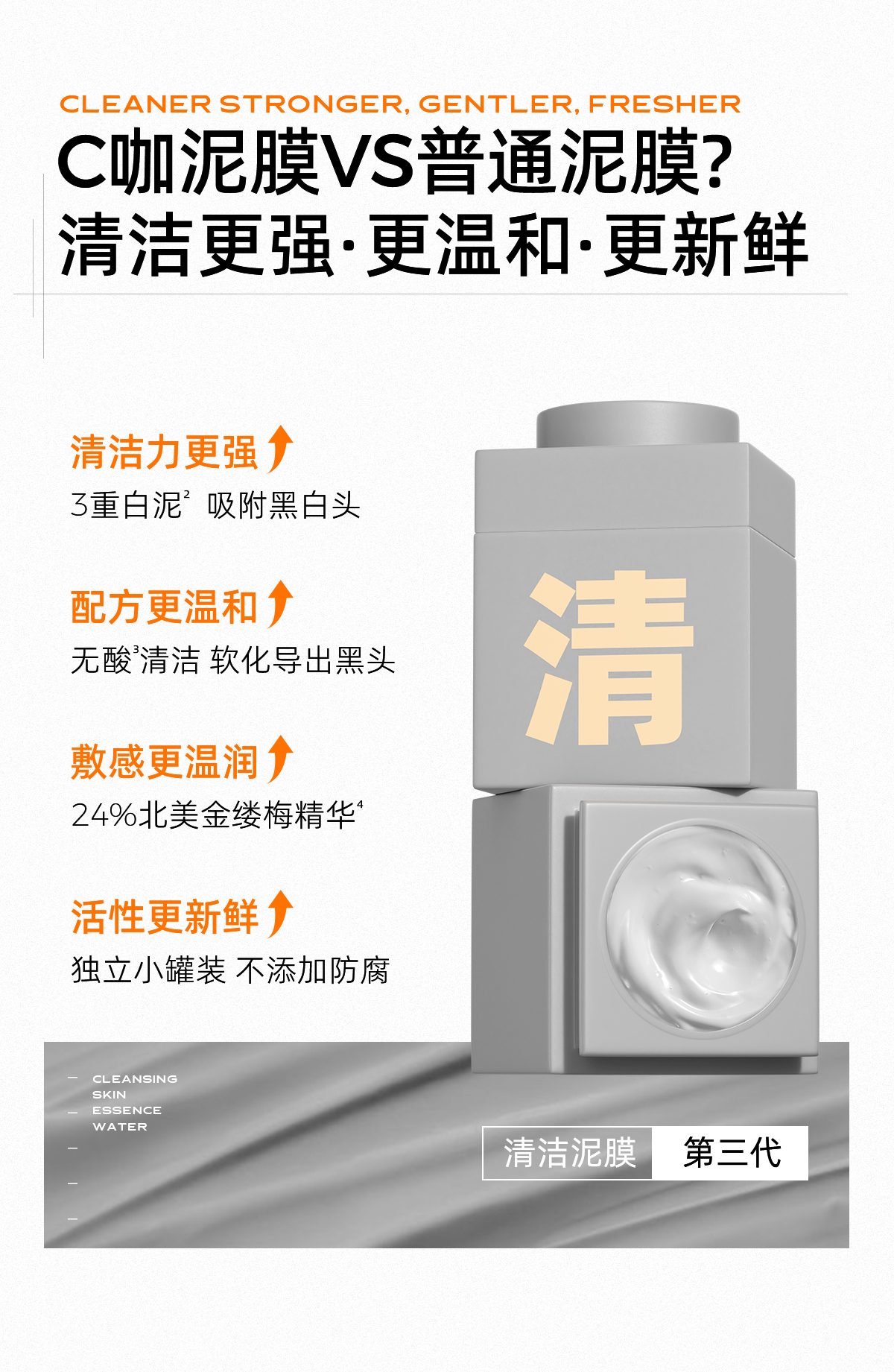 【毛孔吸尘器 吸附黑白头】C咖清净洁肤白泥精华面膜泥膜(第三代)