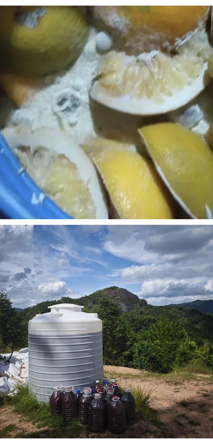 自制脐橙酵素,使用菌类和有机标准允许使用的铜制剂以及悬挂黄板,防治病虫害。