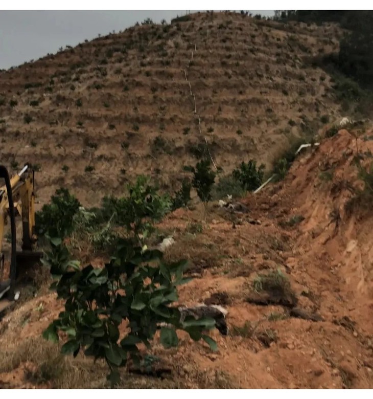 现在果园的情况。刚建园的时候土地贫瘠,一眼望去全是黄土,连杂草也不怎么生长,5年来,一直坚持使用农家肥、有机肥改良土壤,让树有足够的营养汲取,自然生命力强,现在果园绿意盎然,生机勃勃。