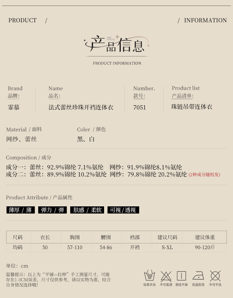 霏慕 法式蕾丝珍珠开裆连体衣7051