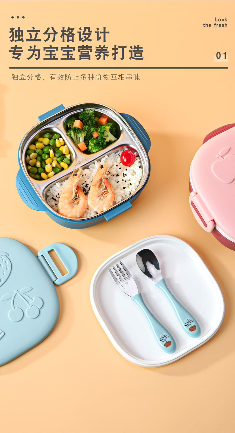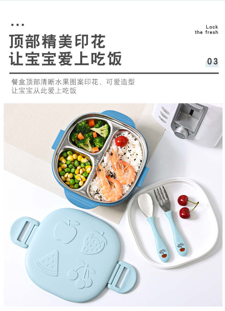 【便携式分隔餐盘套装】开优米幼儿园餐盘304不锈钢创意儿童餐具宝宝菜盘卡通盘子含刀叉