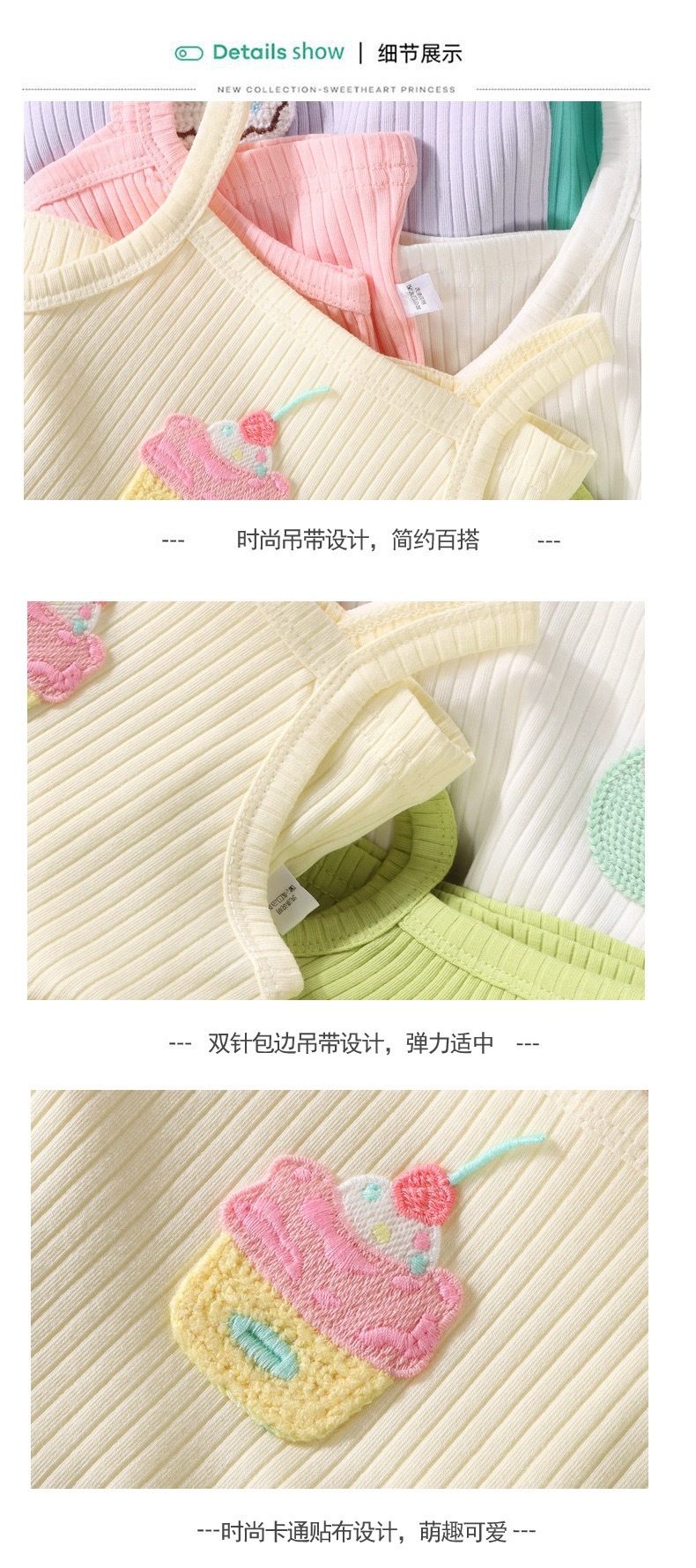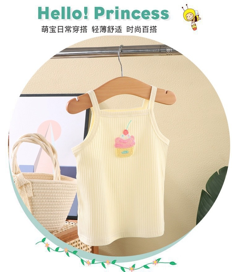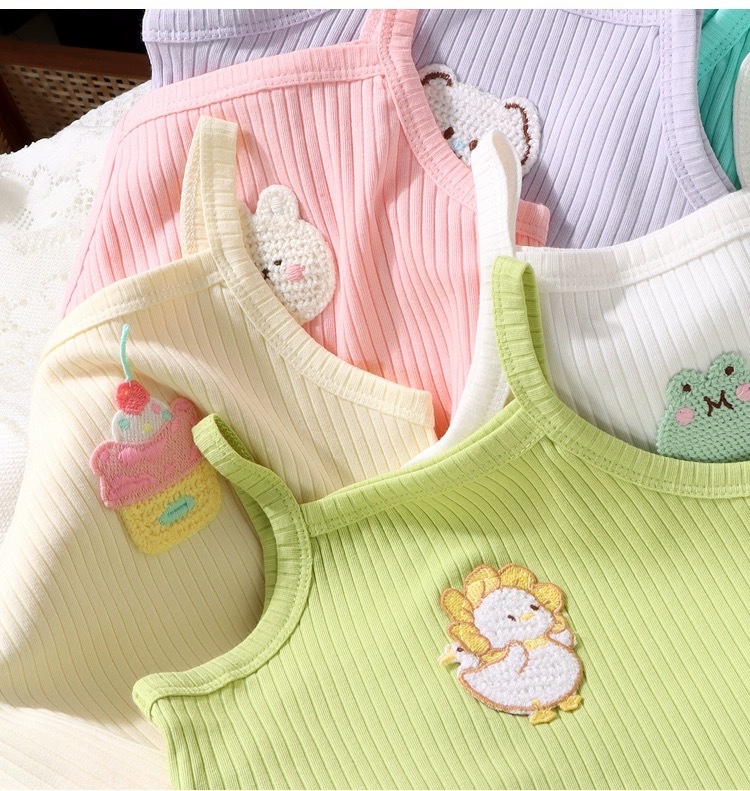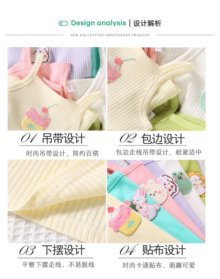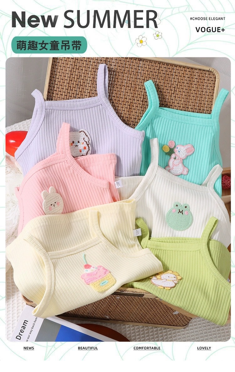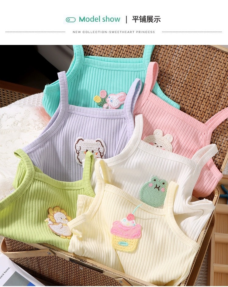 【清凉一夏 时尚百搭】2024女宝无袖上衣卡通刺绣针织修身弹力背心女童吊带衫糖果色夏装