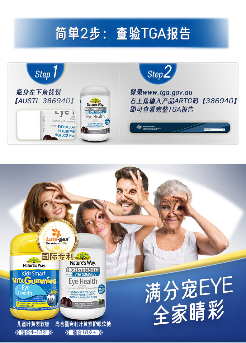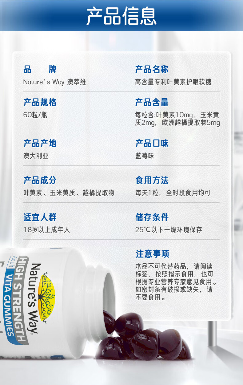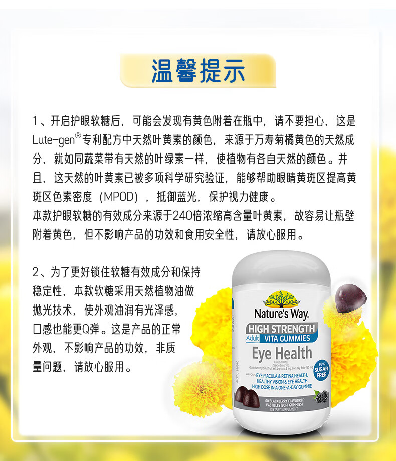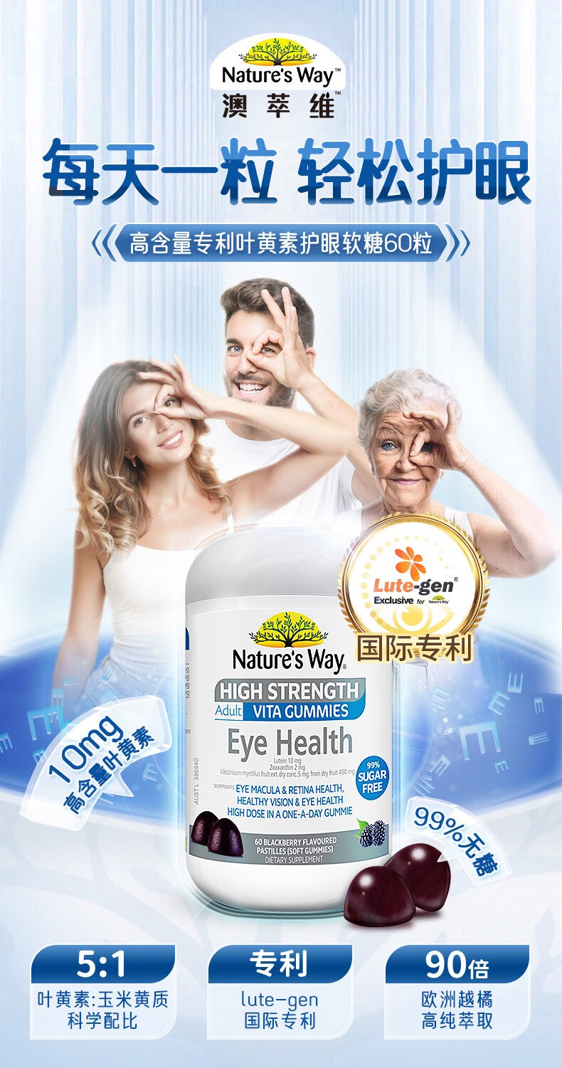 【保税仓】澳洲Nature's Way佳思敏叶黄素蓝莓护眼软糖(成人版)60粒