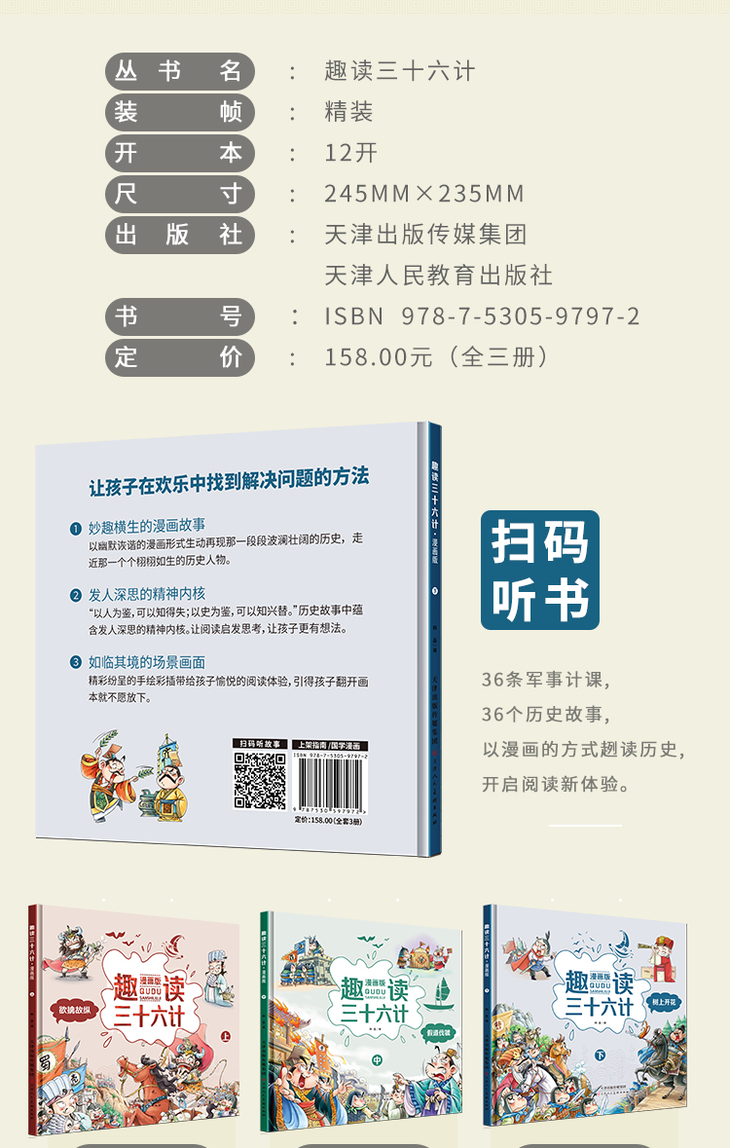 预售到17号发货【趣味历史】趣读三十六计 全三册 36个经典故事 幽默夸张的手绘插图让孩子让孩子轻松阅读