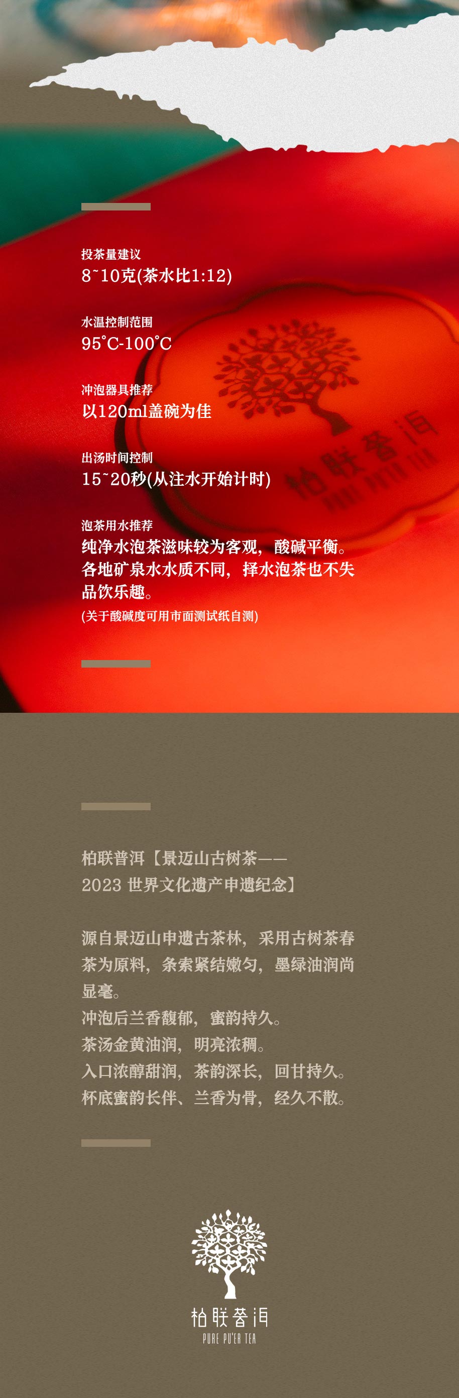 柏联普洱景迈山古树茶2023世界文化遗产申遗纪念500g饼茶限量生茶