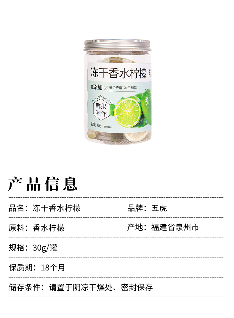 | 【品名】五虎冻干香水柠檬片 【规格】30g/罐 【保质期】18个月 【储存方式】防潮避光、防异味、密封、阴凉保存 【产地】福建 【发货地】福建 【快递】极兔 【不发货地区】新疆、西藏、港澳台地区不发 【加邮费区域】内蒙、甘肃、宁夏、青海+15元 【发货时效】48-72小时发货,节假日顺延 |