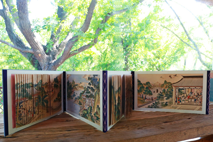 经折装和龙鳞装结合起来,在传统基础上创新的手工艺术,最大限度把曹雪芹的文字之美,跟孙温的图画之美融于一体。