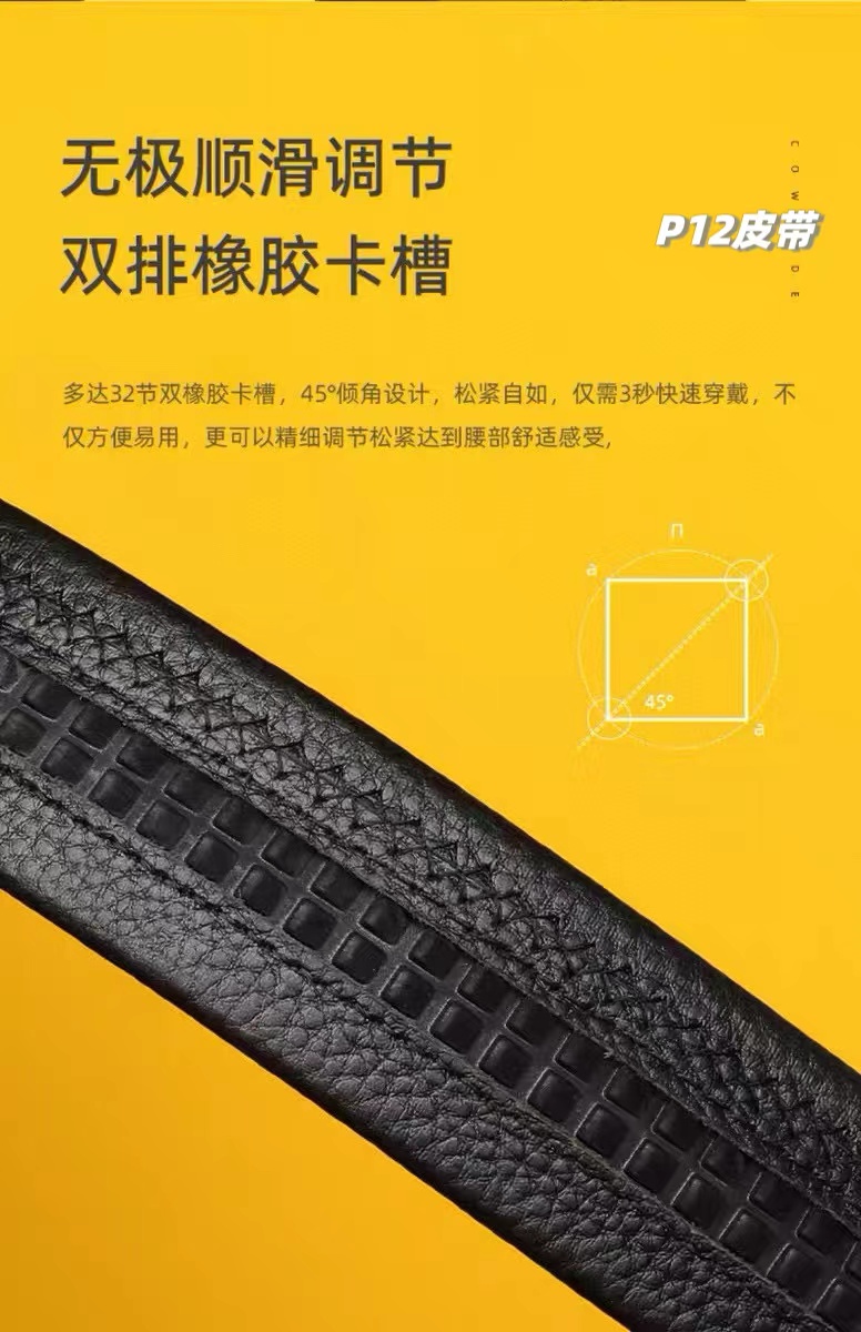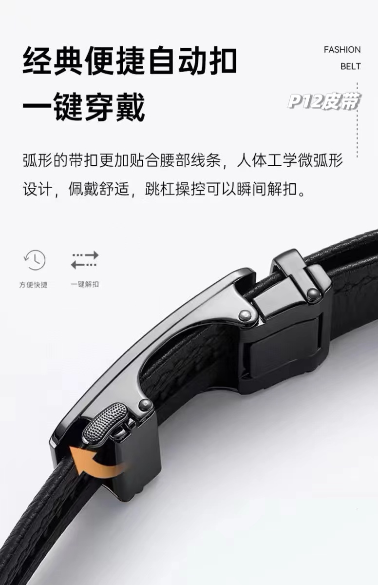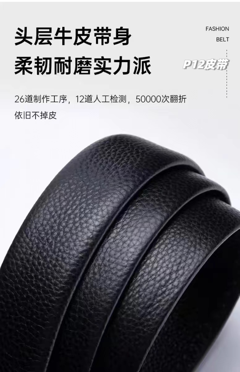 男士双扣腰带自动扣纯牛皮腰带,荔枝纹皮带,男士皮带礼盒装,一盒搭配2个扣头可任意拆卸搭配,宽度3.5cm。男士皮带看的不是颜值,主要看气质低调奢华,又不会显得人很浮夸,看上去很沉稳可靠!越看越觉得羔级,男人看腰一定要有一条好皮带!太太太好了这么高大上的皮带,真的要命啊质感爆屏看得见的好啊!皮带里外都采用牛皮,触感厚实,凹凸有致,清晰分明,品相wan美。内里皮面纹理非常精美细致,透气性、韧性都非常好,很显档次,坚固耐用。