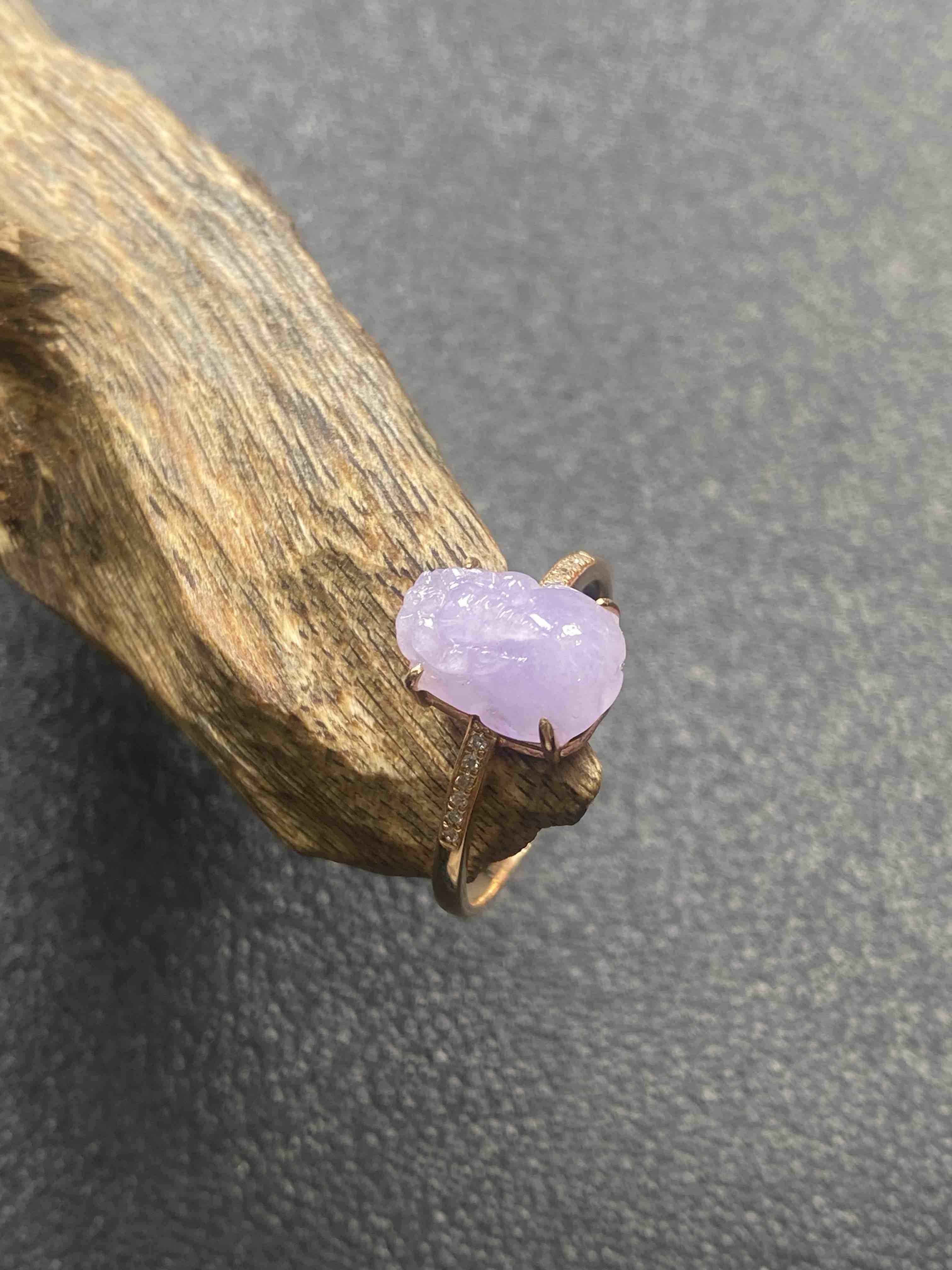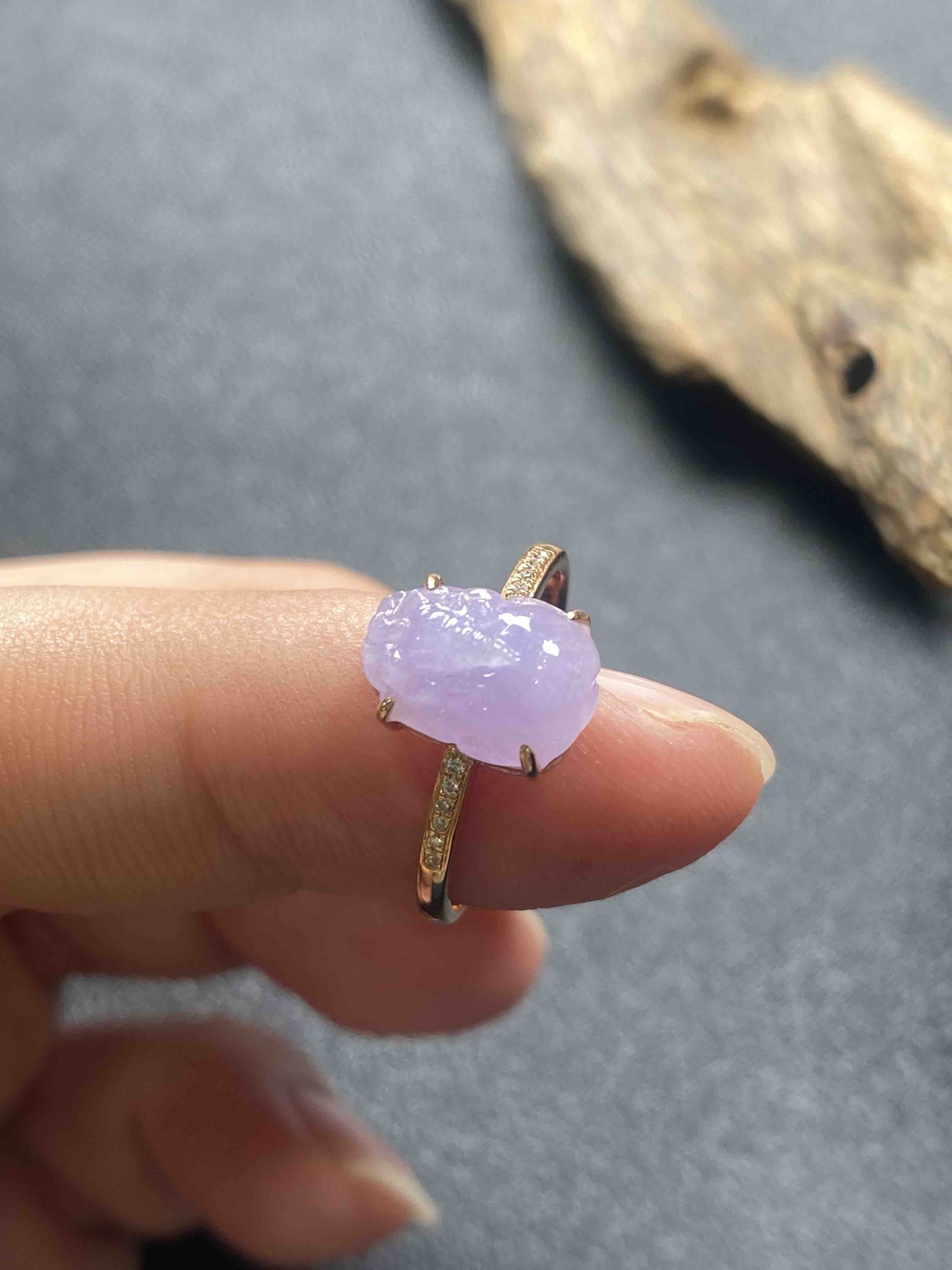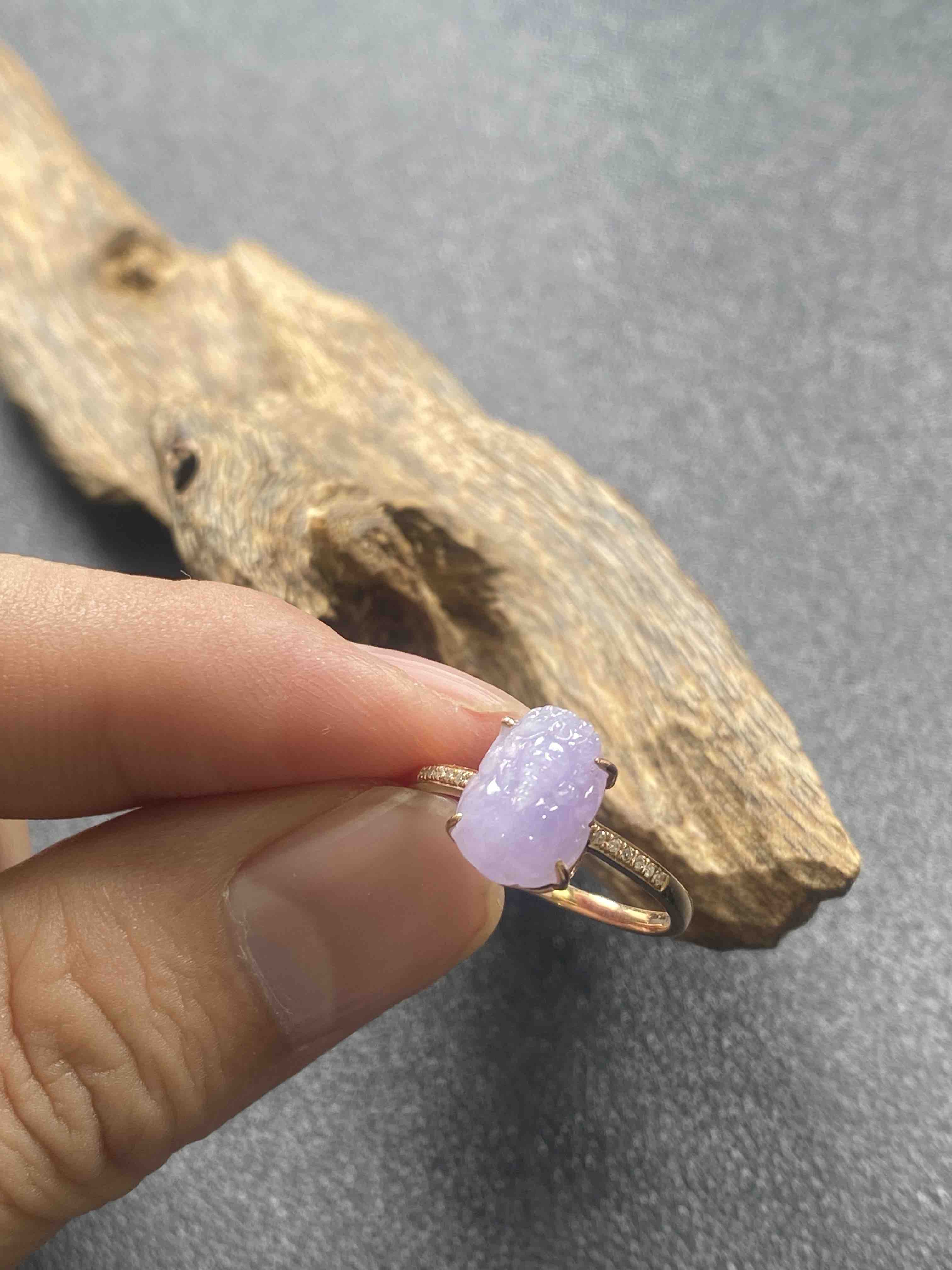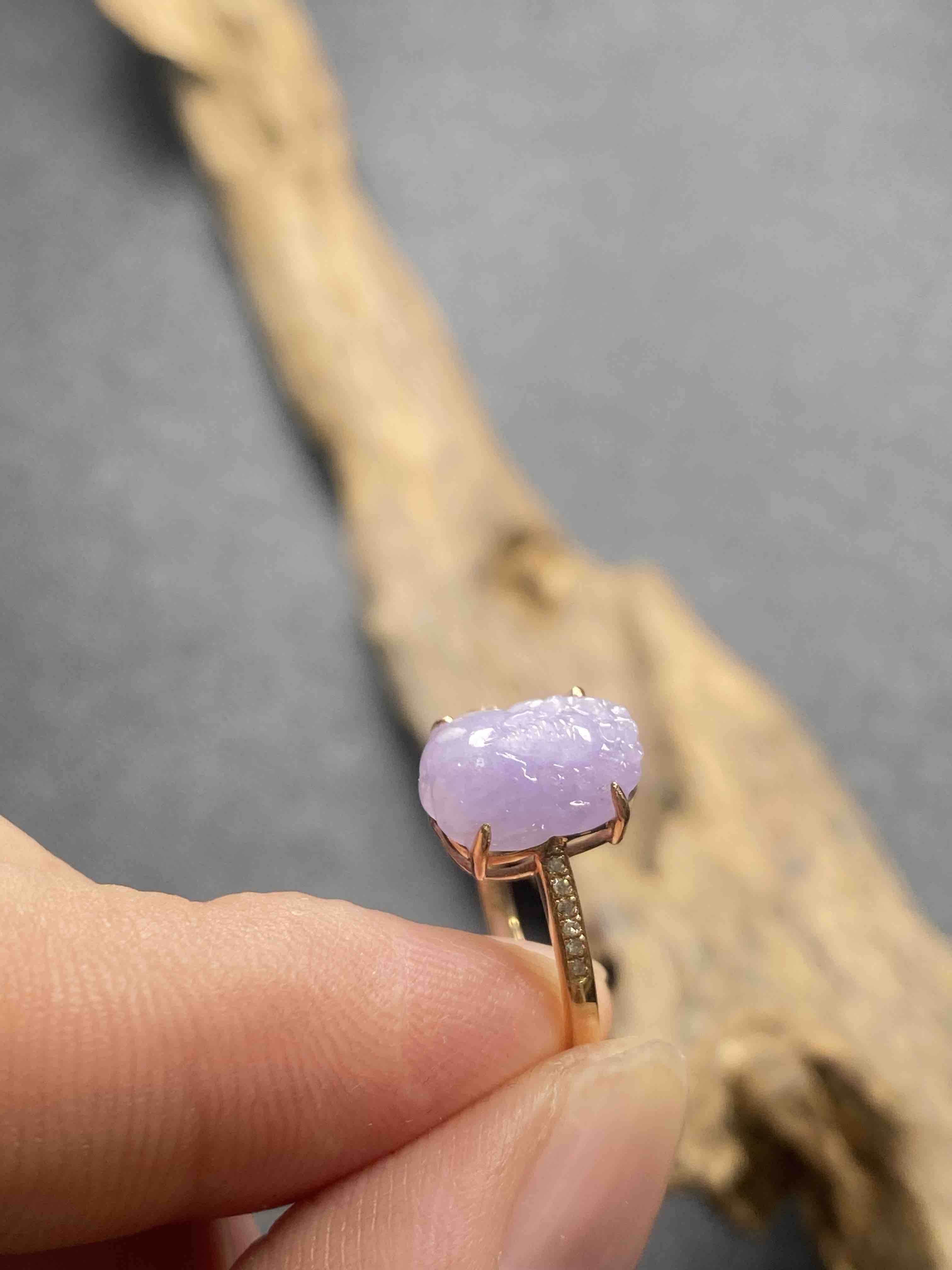 【FC0141】18K镶嵌翡翠紫貔貅戒指 色泽娇艳 款式精致 圈口14 裸石尺寸:14.3*7.7*3.3mm 超值价💰3100