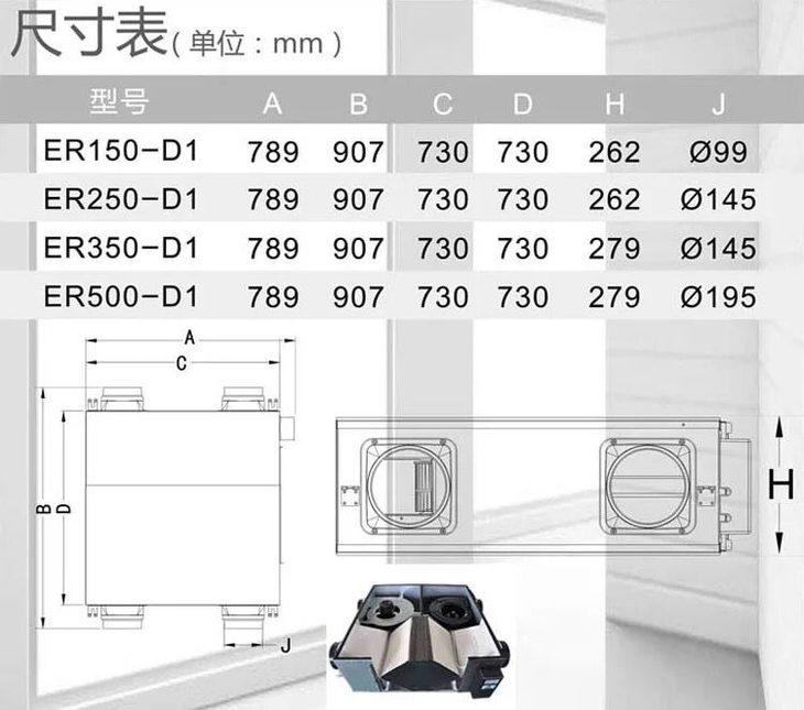 ER150-D1爱美信ER系列全热交换新风机 商品编码82590