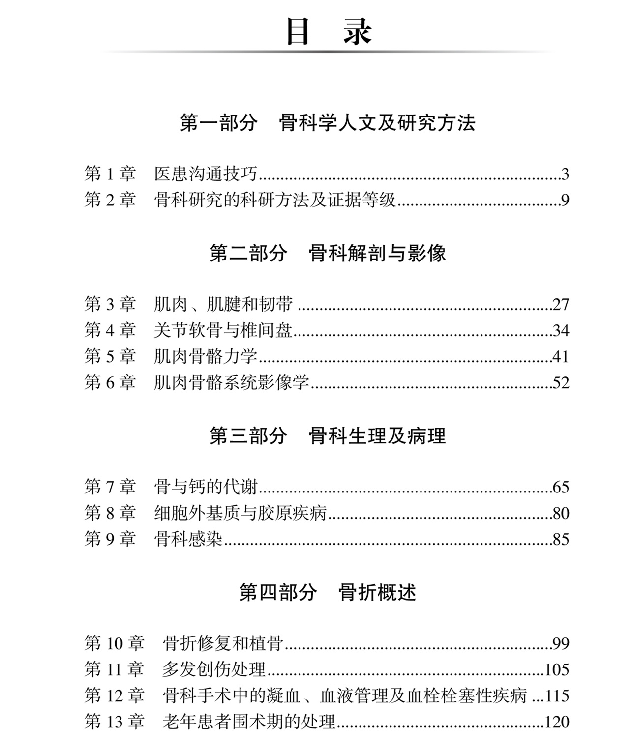 本书内容不仅涵盖了人体四肢关节及脊柱疾病的介绍和处理原则,还包括了骨科人文及骨科领域热门争议话题的最新进展。在系统与完善的介绍骨科经典的框架内,同时将各位作者在长期临床实践中形成的经验与认识融入其中。