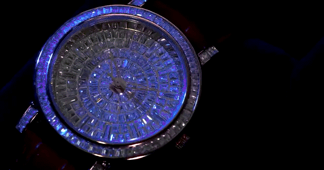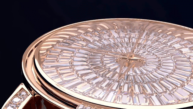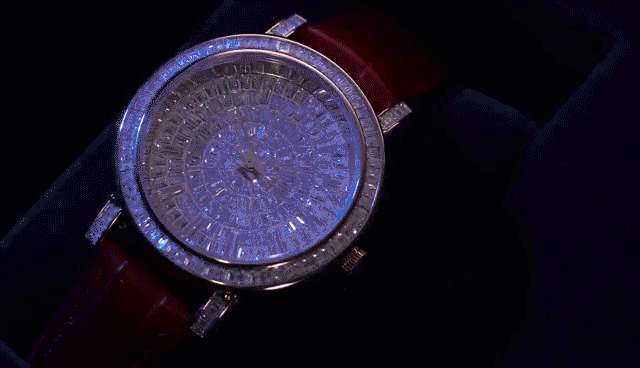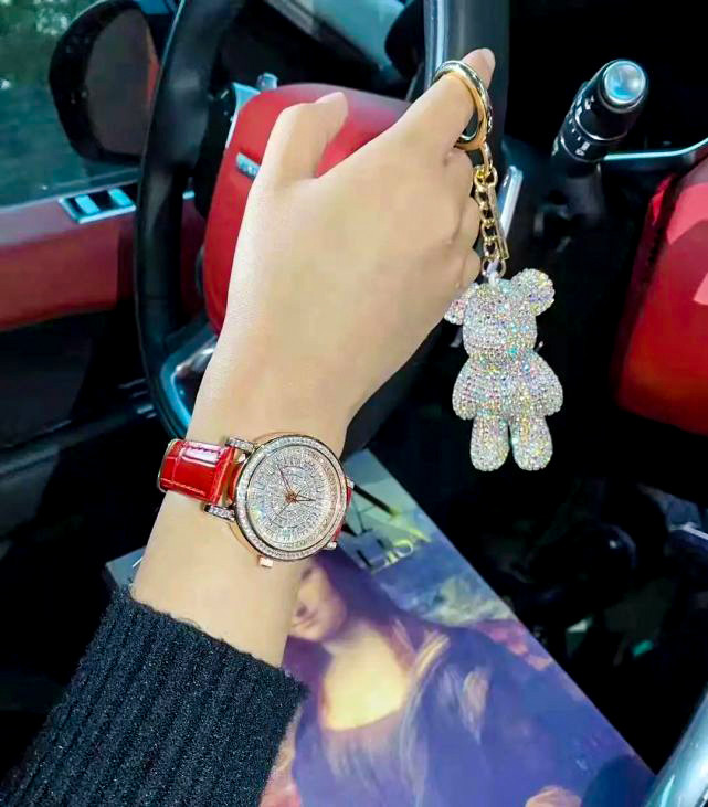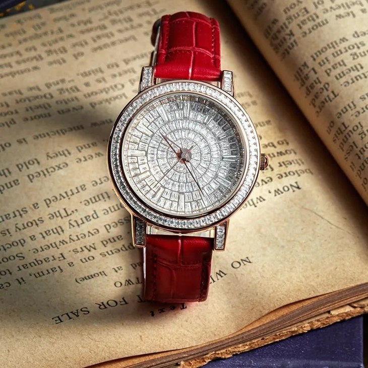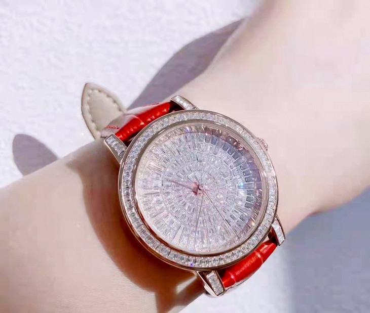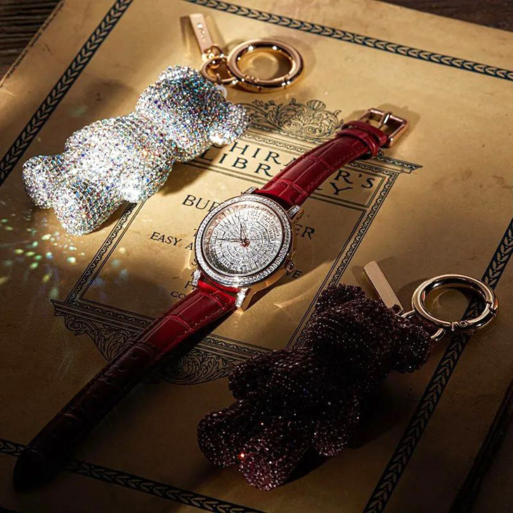 精致光洁的表盘上足足镶了上百颗奥地利水晶,晶莹闪耀、高级奢华。