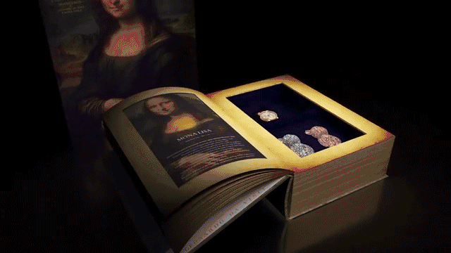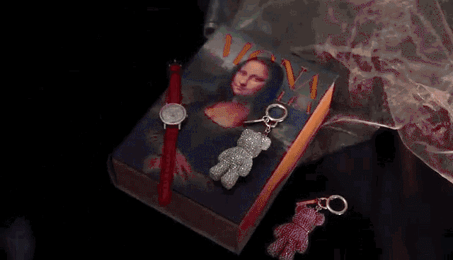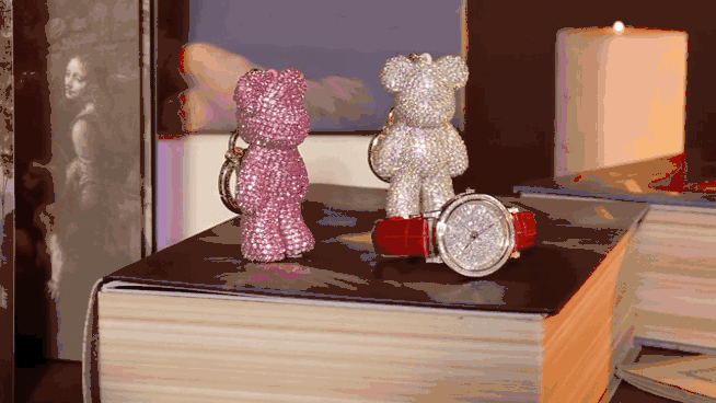 翻到最后一页,映入眼帘的是两个精美满钻小熊和这块蒙娜丽莎的手表,看到的一瞬间星光璀璨,像是打开了一个传世珍宝一样。