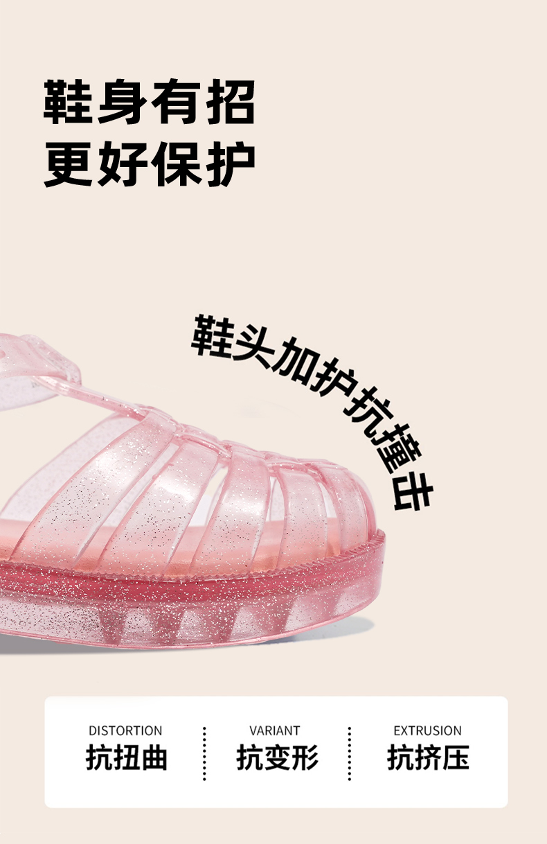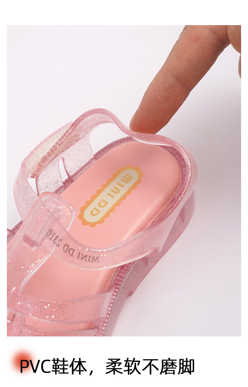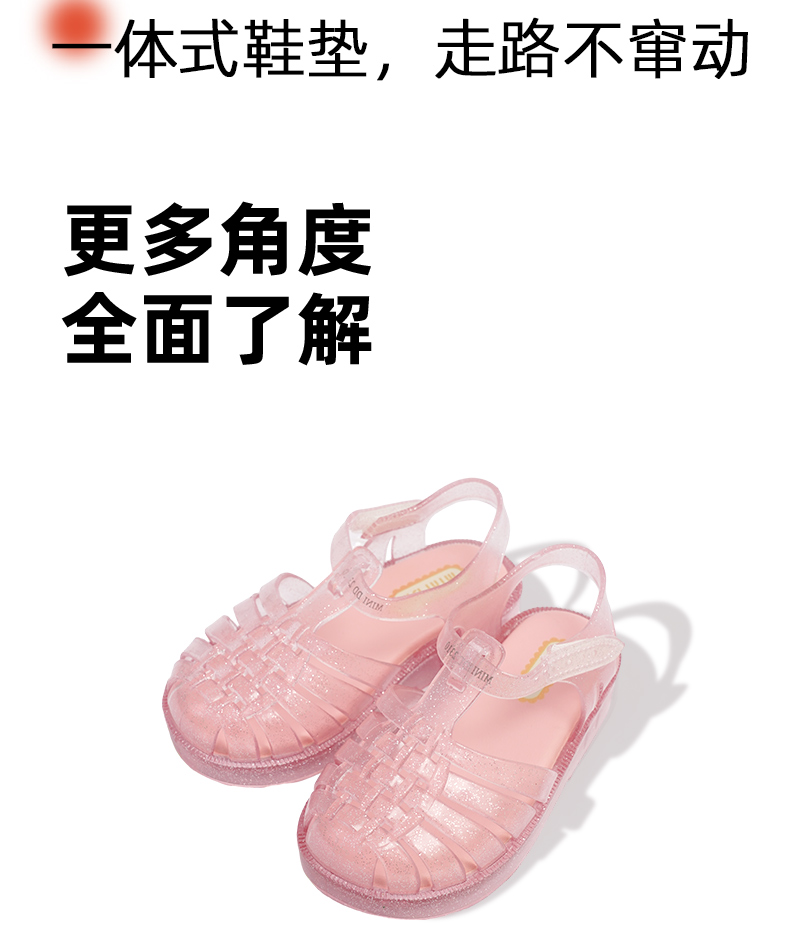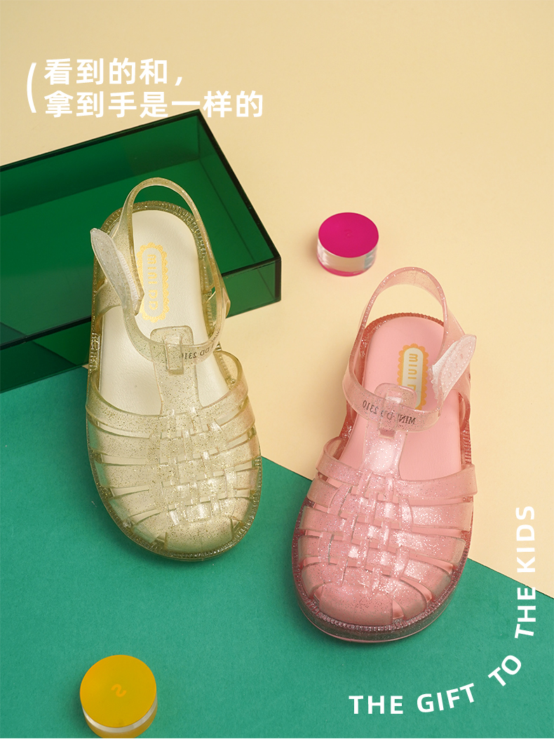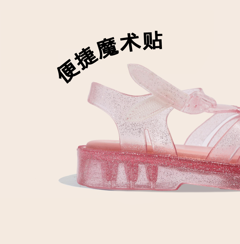 MINIDD儿童罗马鞋闪粉软底女童凉鞋魔术贴宝宝猪笼鞋MNDD24-09