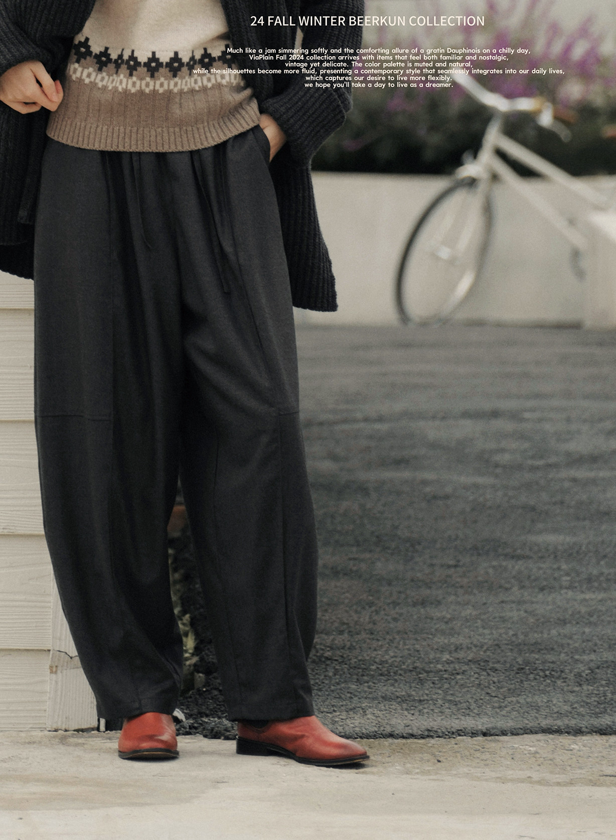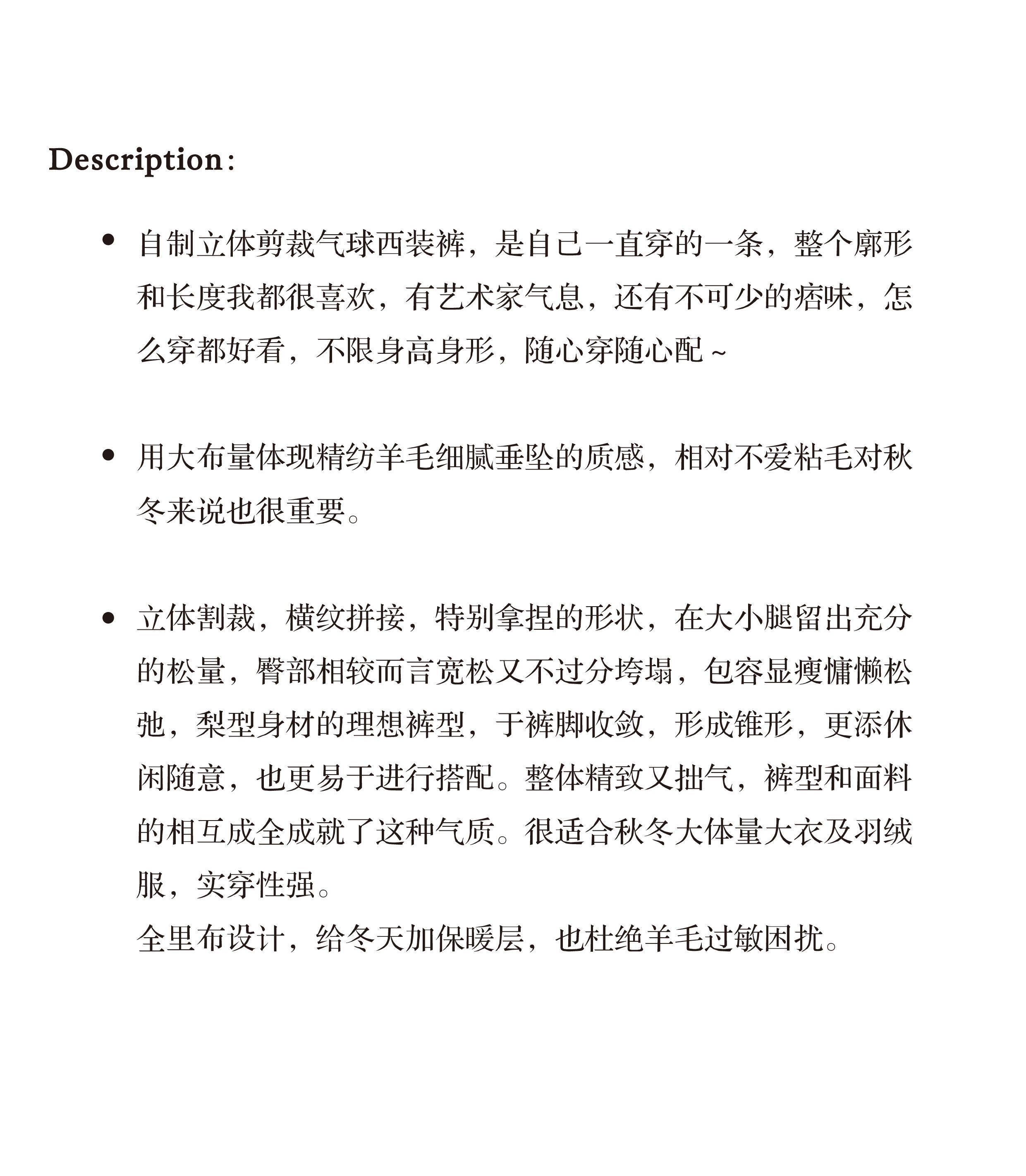 [特价]高支精纺羊毛气球裤 全里衬松紧腰 浅灰色休闲裤