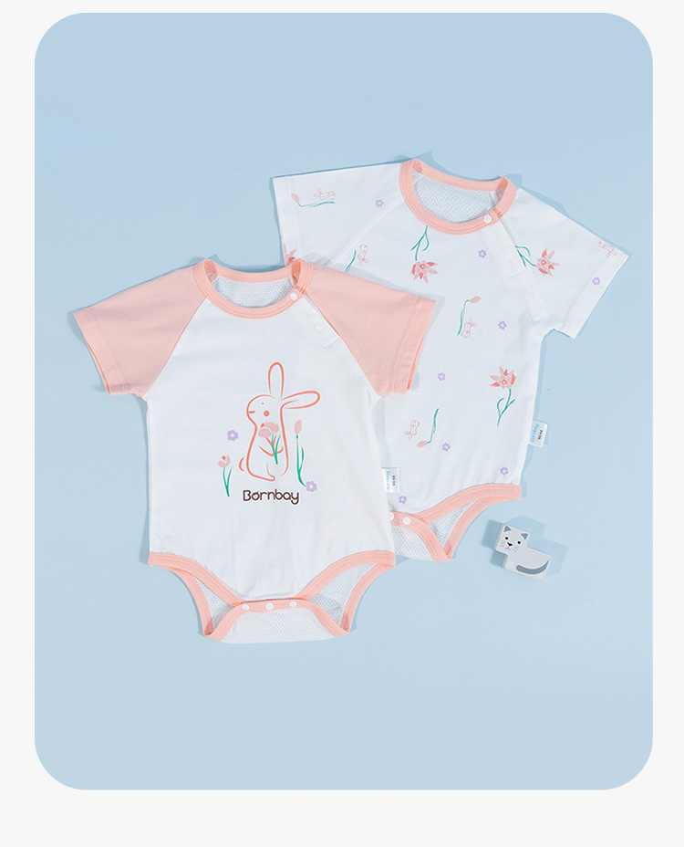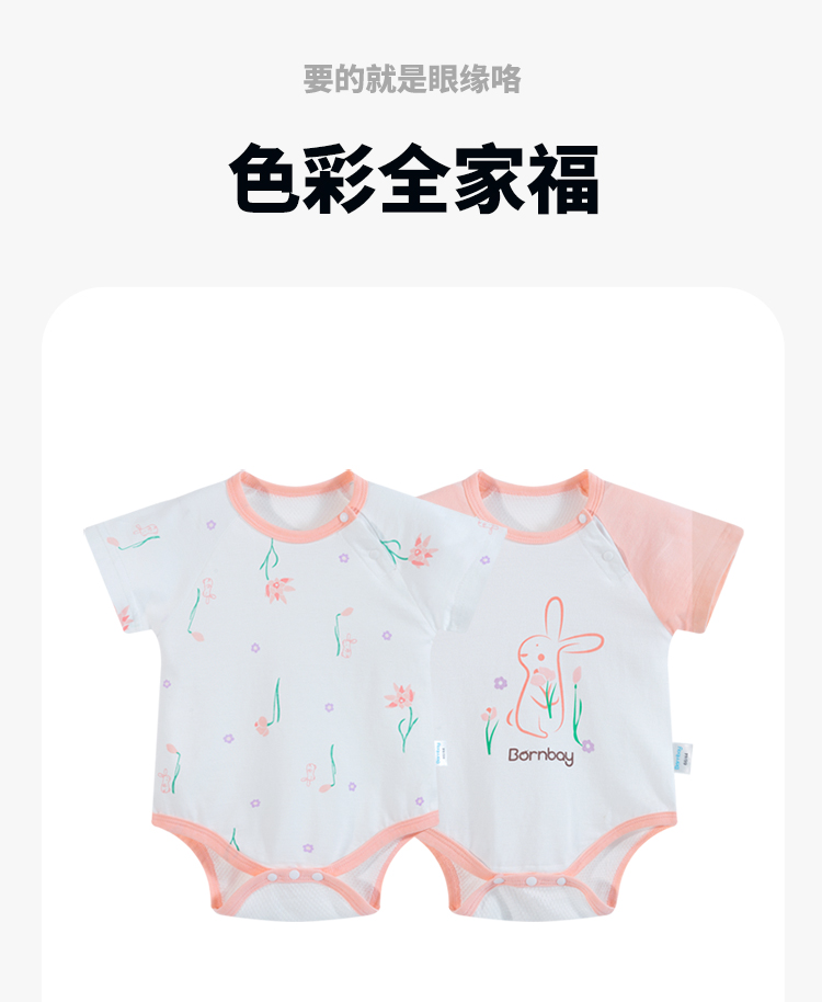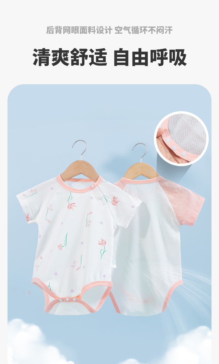 贝贝怡男宝宝短袖包屁衣夏季款新品婴儿爬服透气包屁衣(两件装)