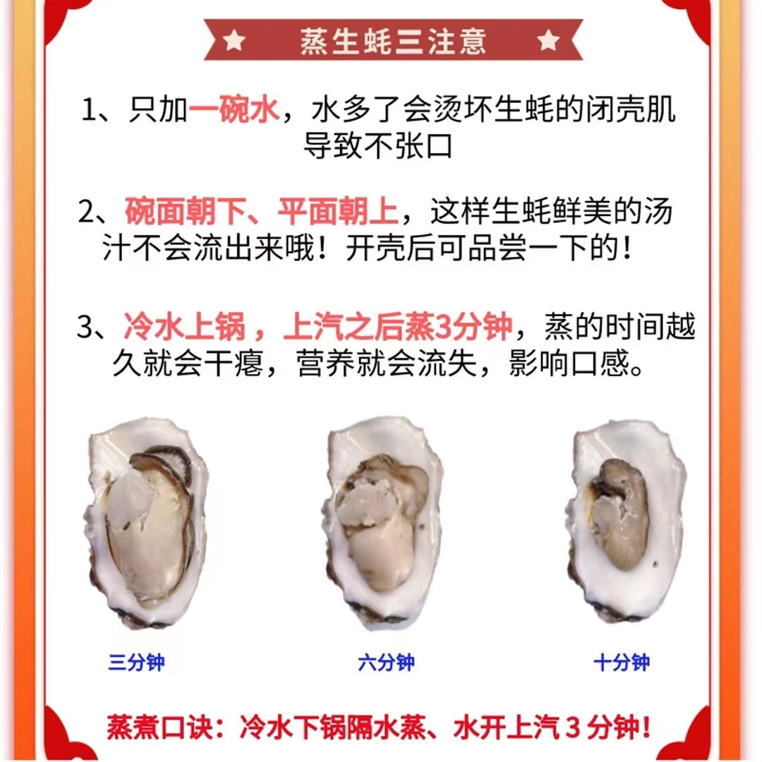 2.生蚝运输过程会有水耗,,故存在少量的重量偏差,10%范围以内正常,不售后。