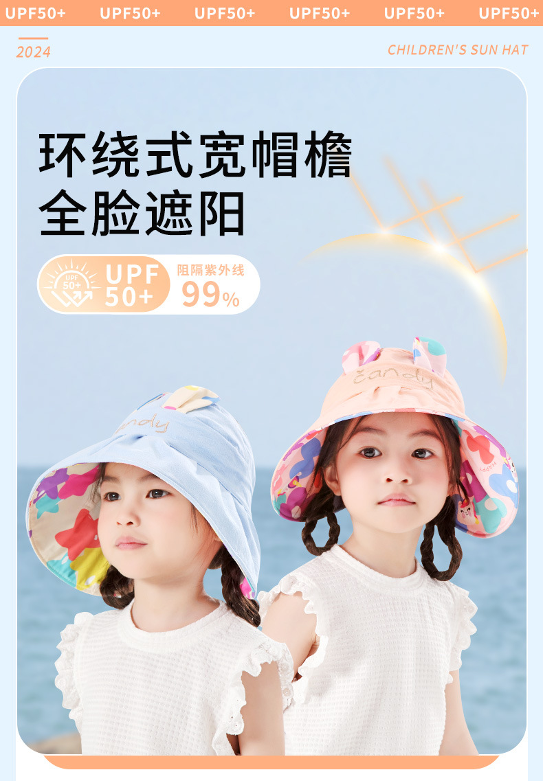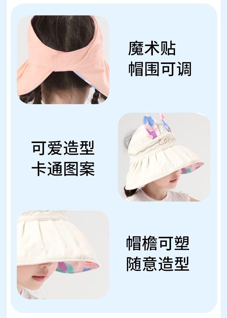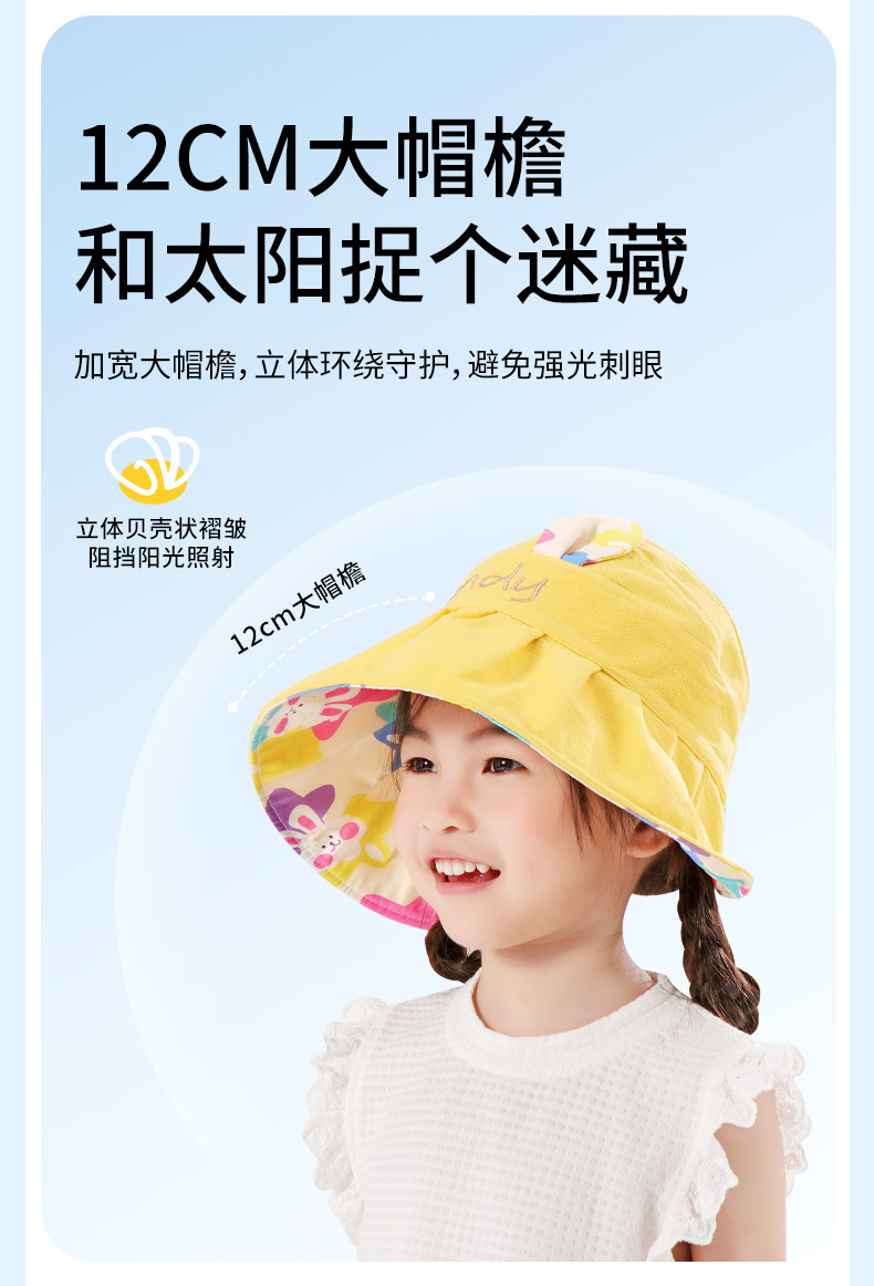 【全脸防晒❗UPF50+空顶贝壳遮阳帽】阻挡阳光照射,羽感轻盈,魔术贴帽围可调,薄款儿童防晒太阳帽可爱男童女童婴儿出游空顶帽QQ
