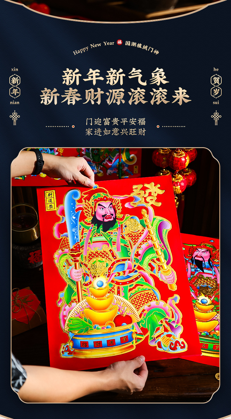 蛇年新款满烫金门神年画春节门贴铜版纸日月发财年画批发厂家批发