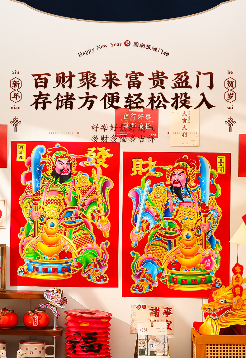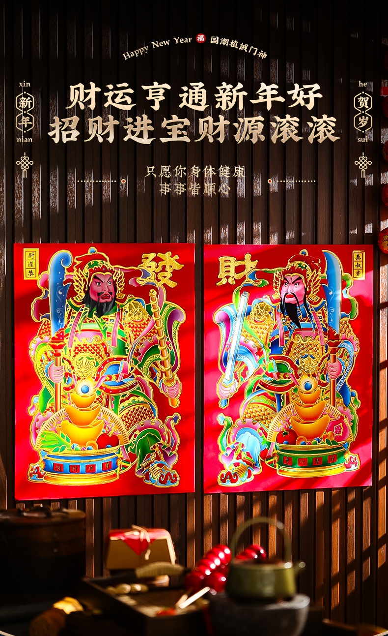 【富贵盈门❗️新年限定门神贴纸】福到门前,财运亨通!2025新款过年春节装饰品家用自粘财神爷福字大门年画马年