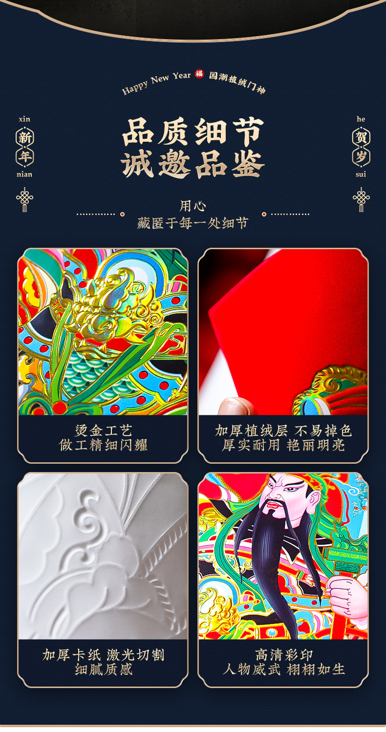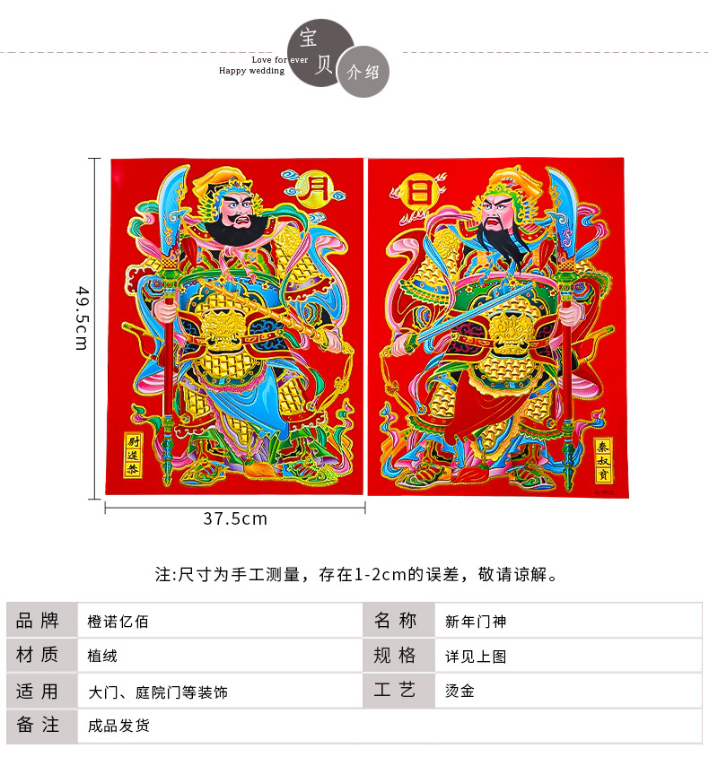 2025蛇年新款满烫金门神年画门贴 铜版纸日月发财年画厂家批发