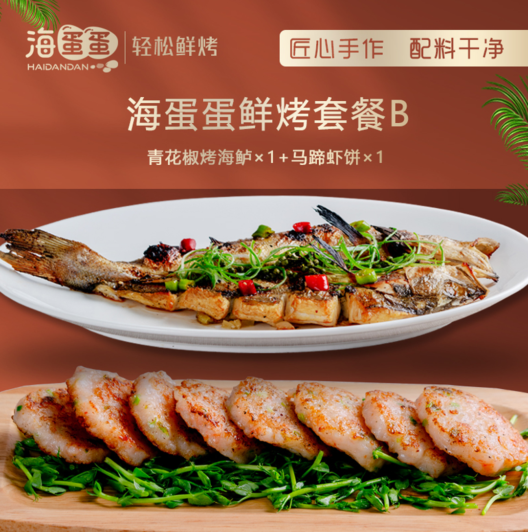 海蛋蛋烤鱼套餐 青花椒烤海鲈650g*1盒+马蹄虾饼180g*1盒
