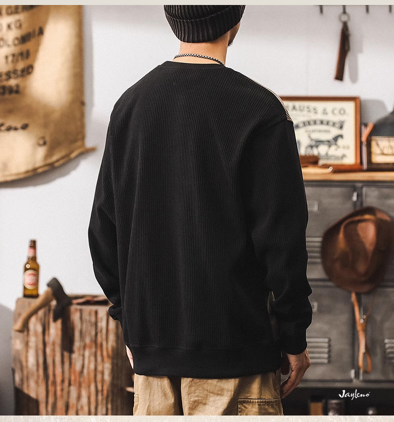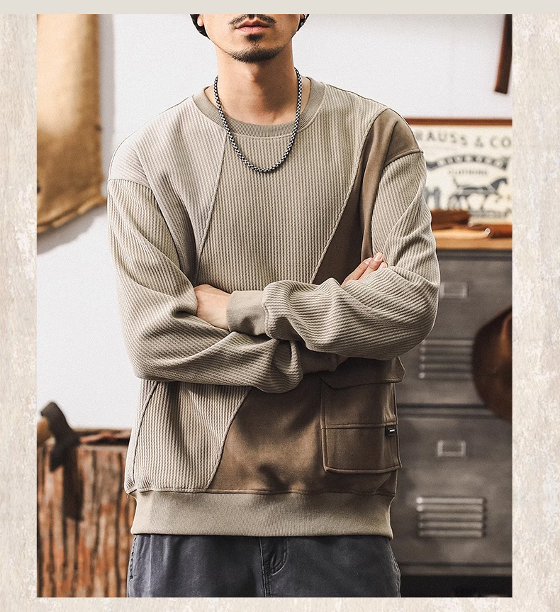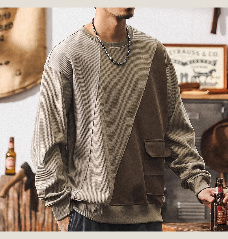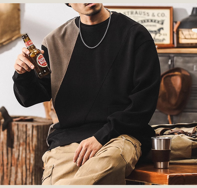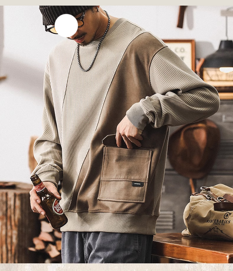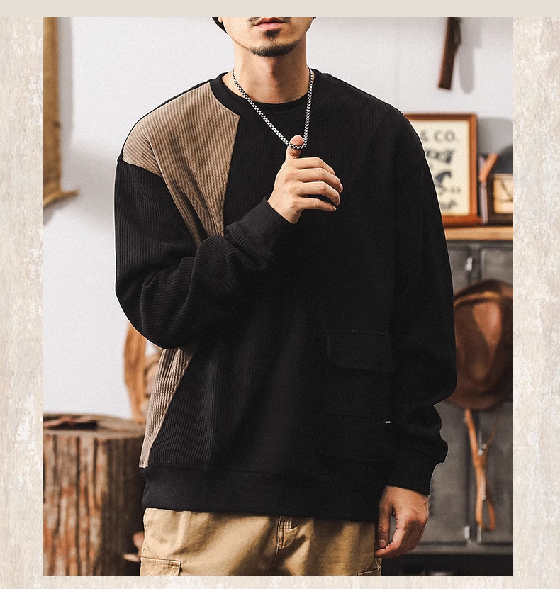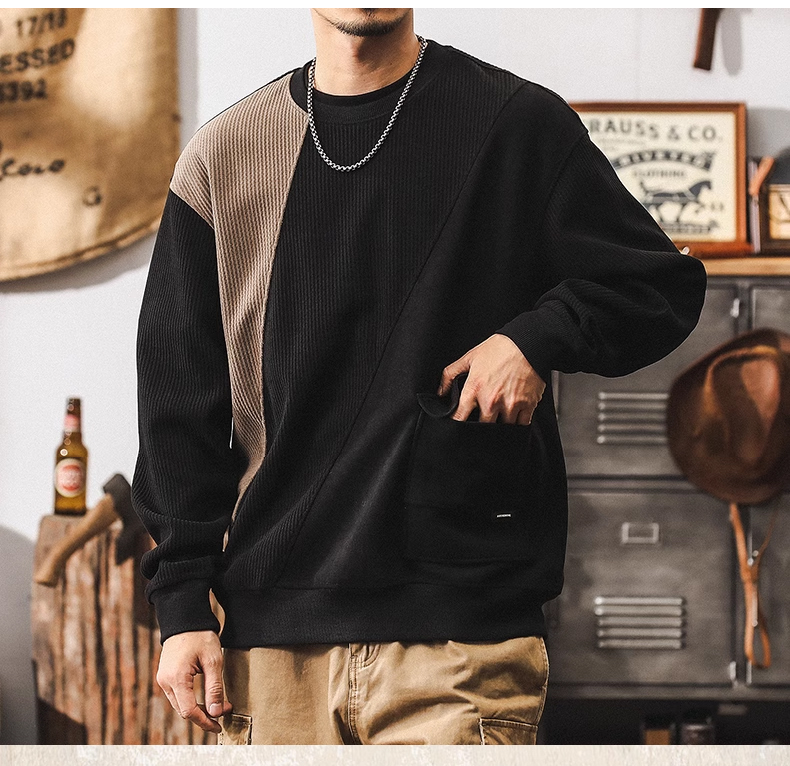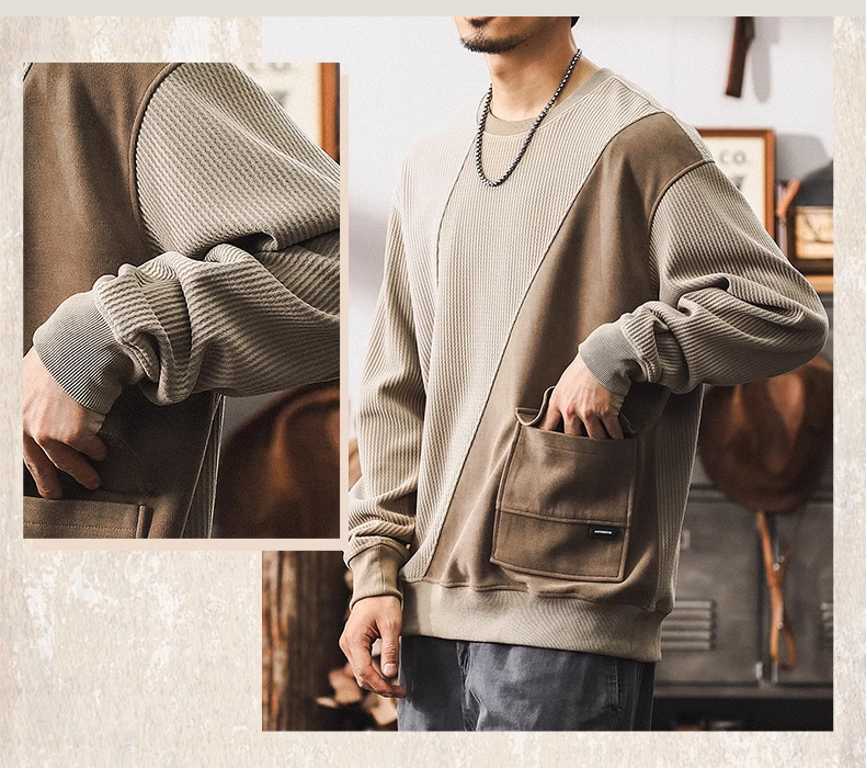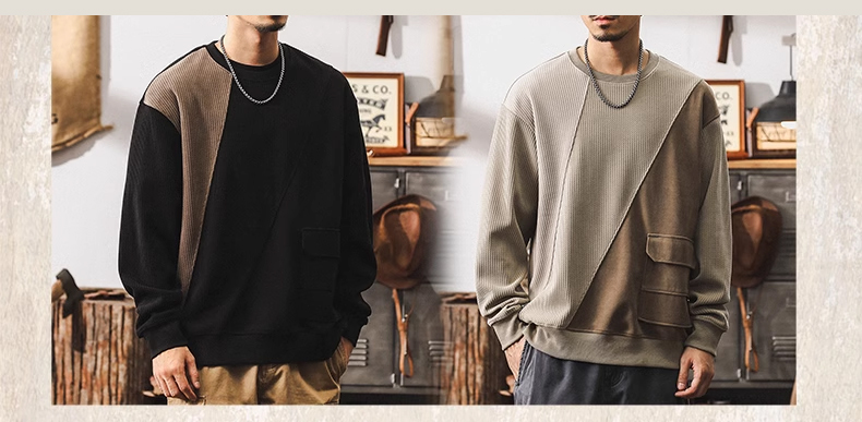 裁缝学苑MQ52美式复古拼接圆领套头卫衣纸样男装宽松上衣样板图纸