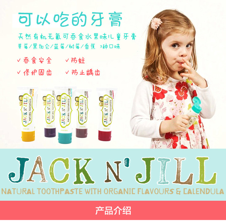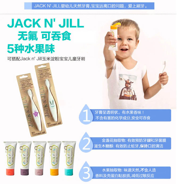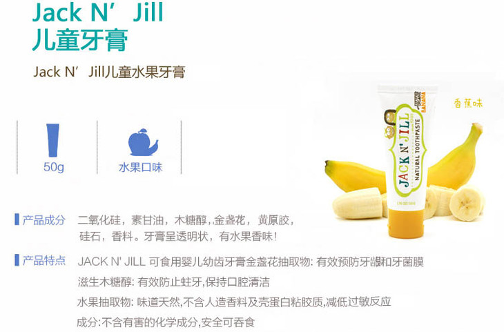 (永久下架)澳洲Jack n' Jill 可吞食无氟纯天然有机儿童牙膏 香蕉味50g