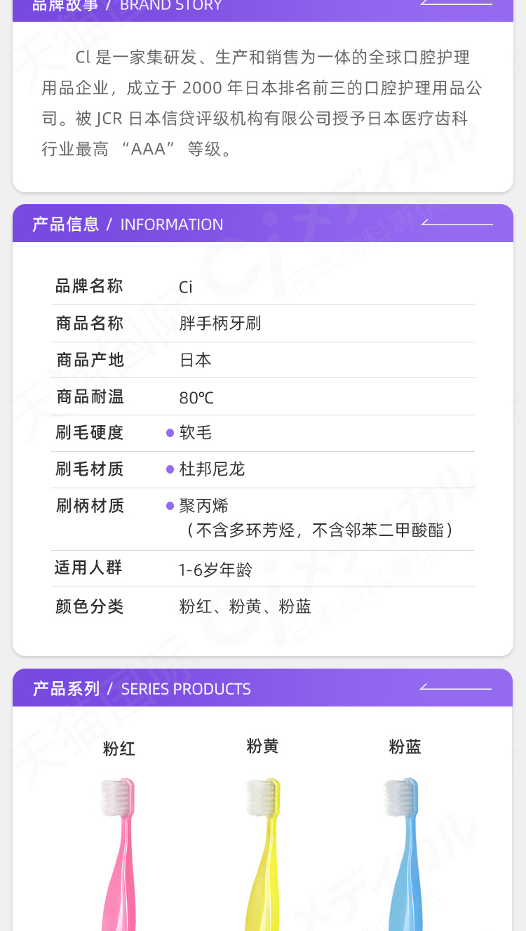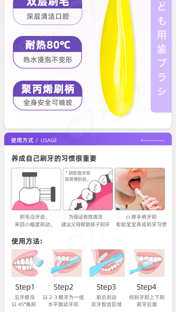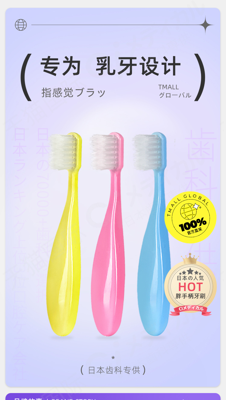 日本进口Ci胖手柄儿童牙刷1-6岁小胖子软毛宝宝乳牙牙刷