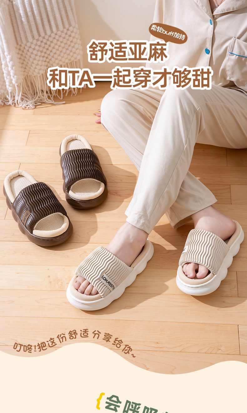 四季亚麻拖鞋女家居厚底室内防滑踩屎感防臭吸汗情侣地板棉麻拖男