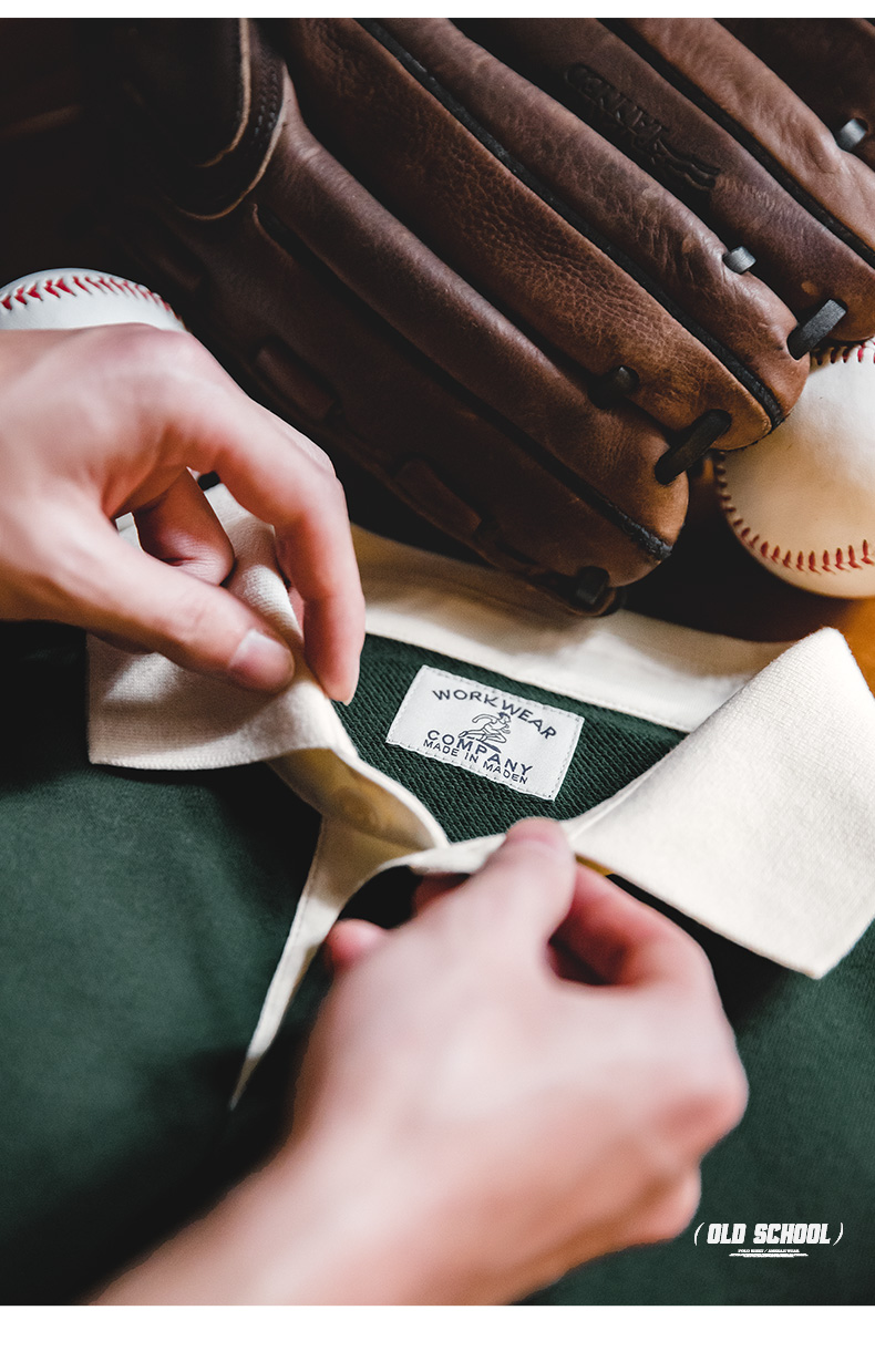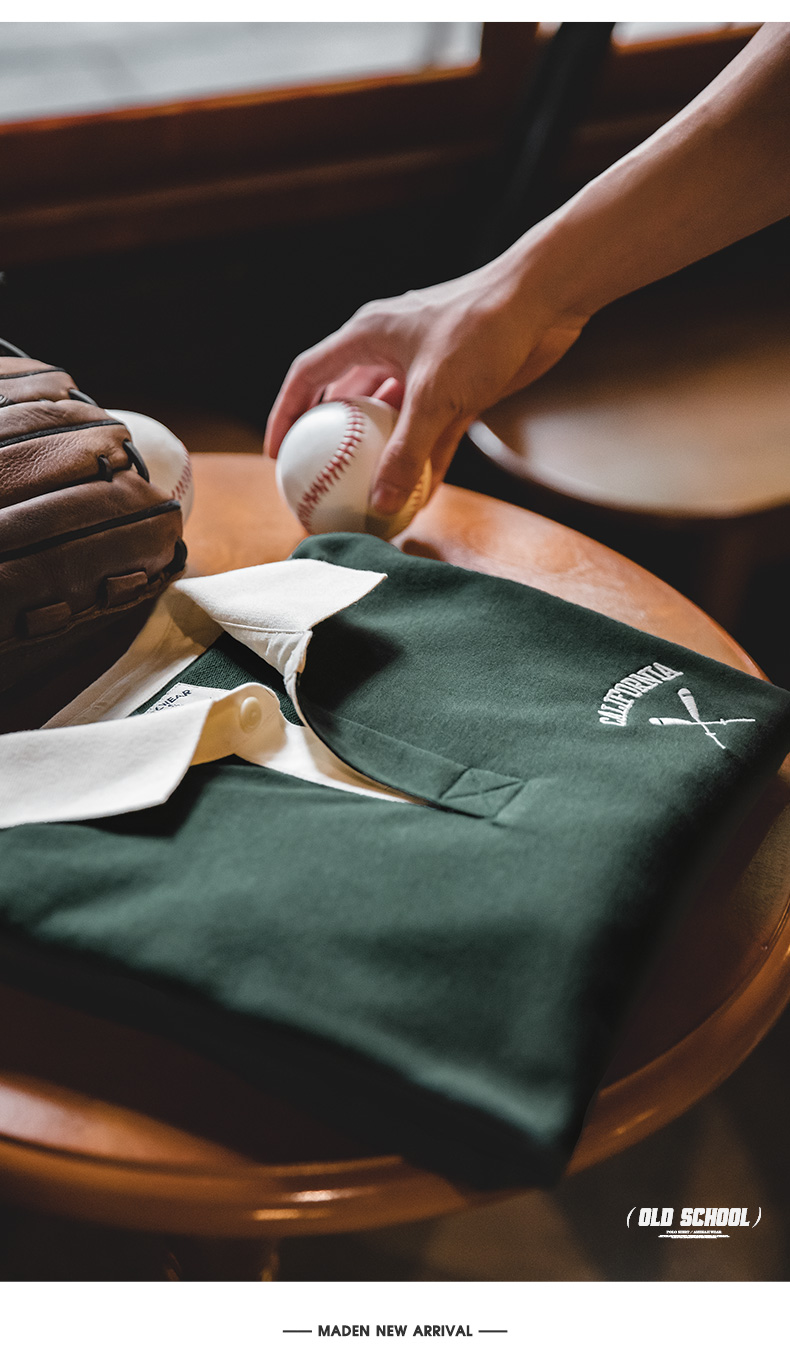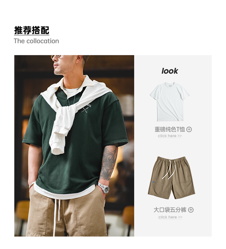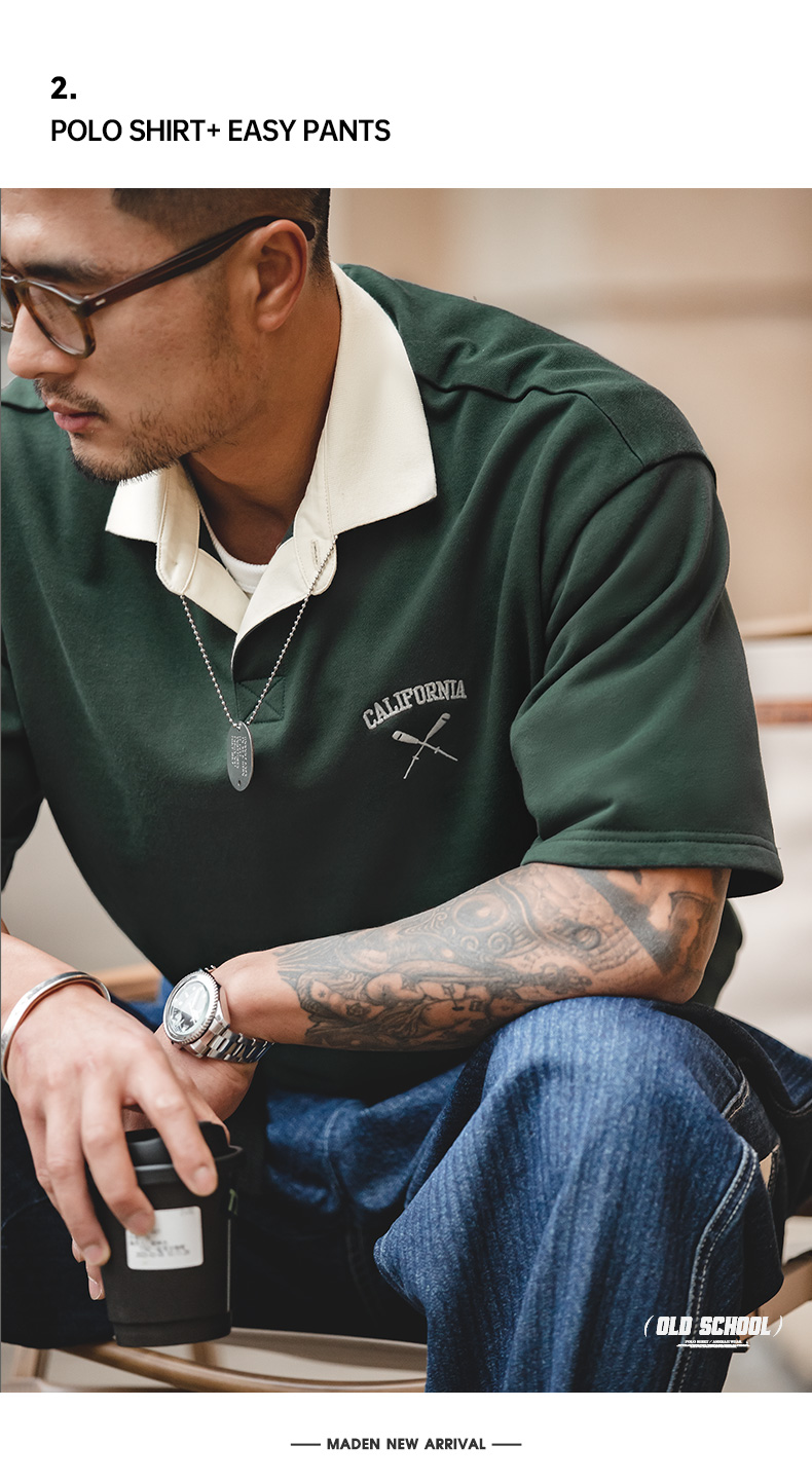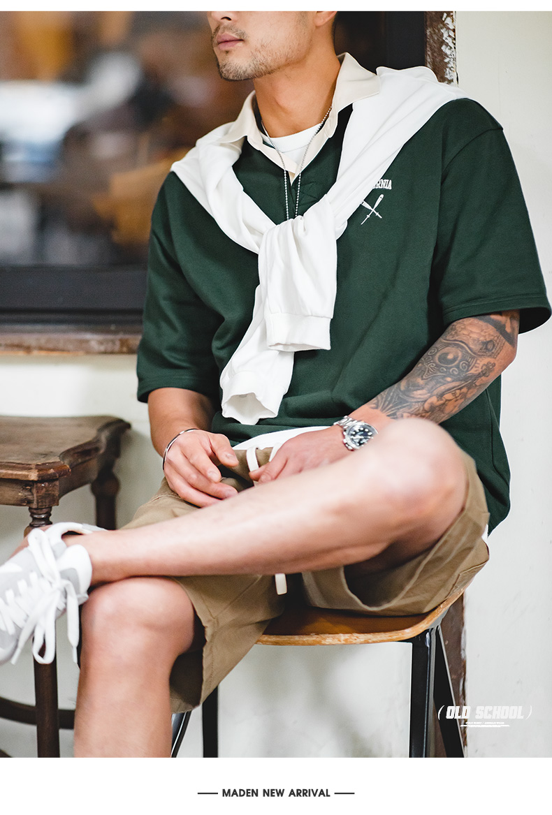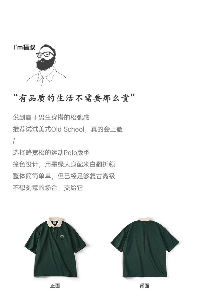 工装优选 美式复古撞色POLO衫墨绿色短袖重磅网球翻领半袖T恤男夏