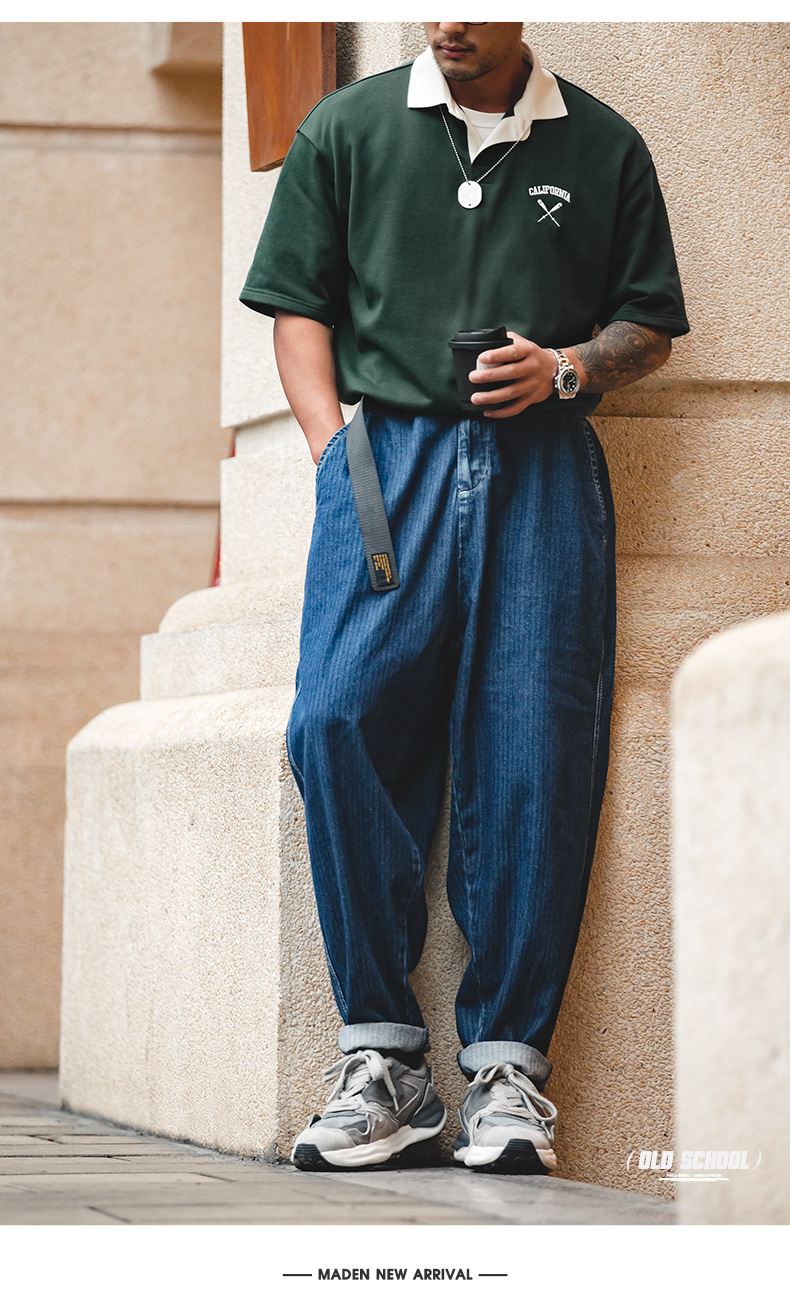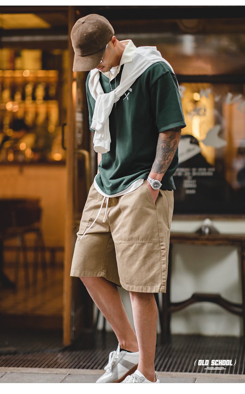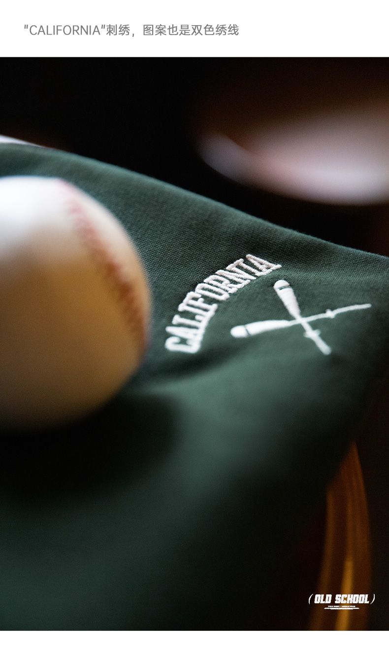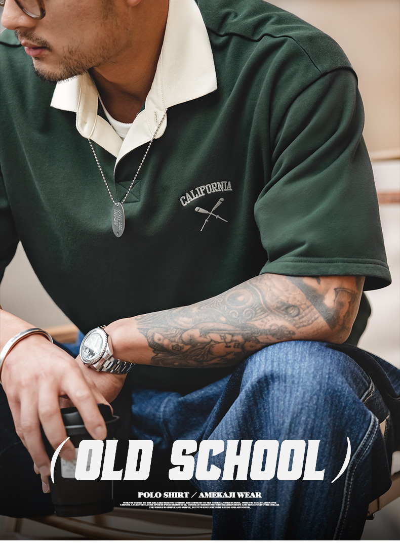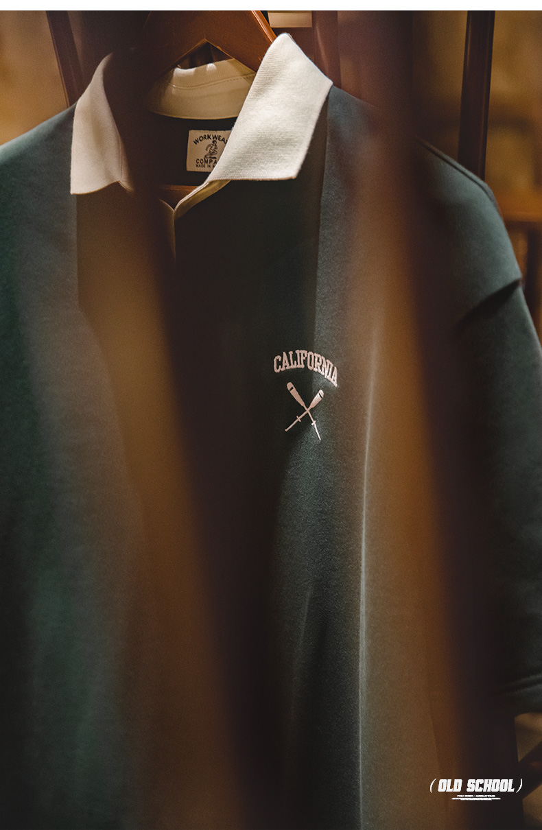 工装优选 美式复古撞色POLO衫墨绿色短袖重磅网球翻领半袖T恤男夏