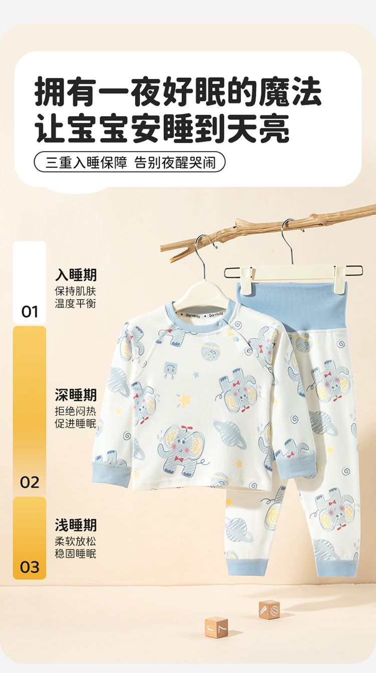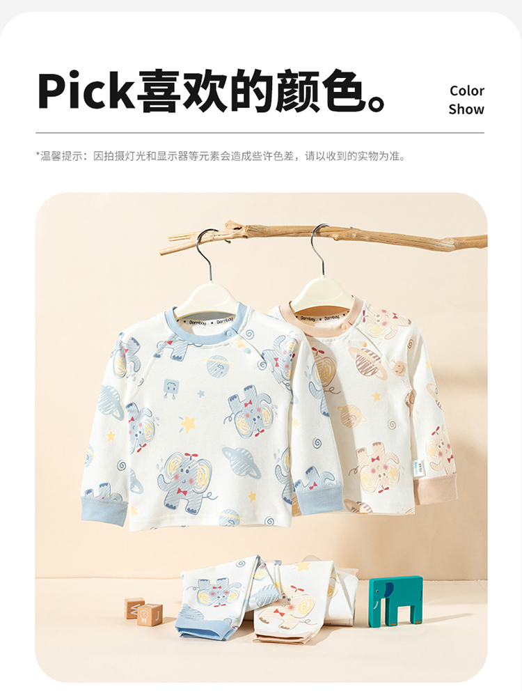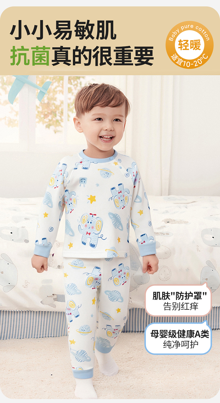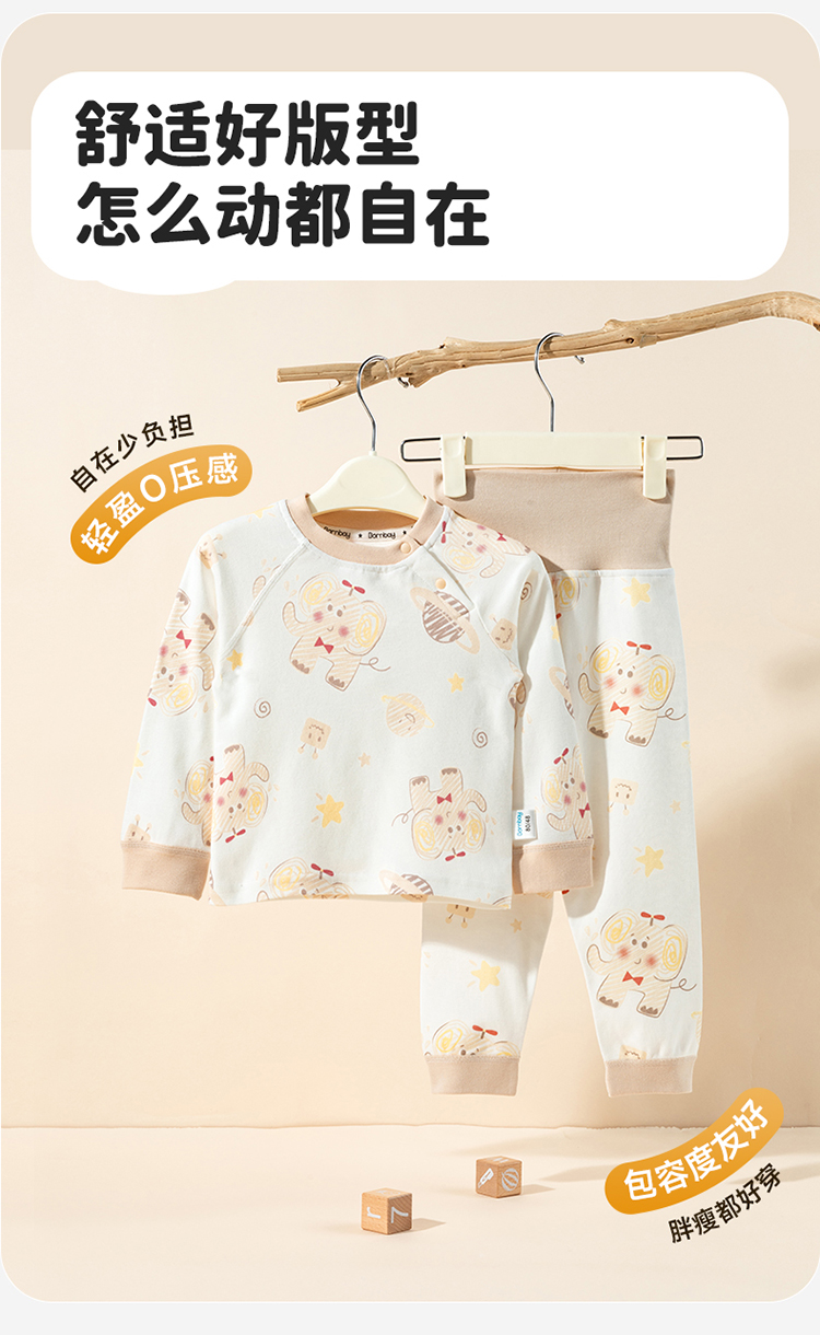 贝贝怡男女宝宝内衣套装春秋婴儿套头上衣秋衣秋裤家居服小童纯棉ZB3ET013