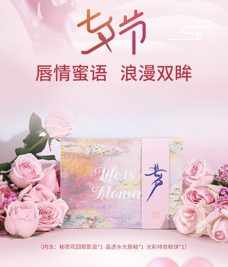 七夕礼物【七夕限定礼盒套装】戈戈舞朝花夕拾眼影盘唇釉粉饼gt301