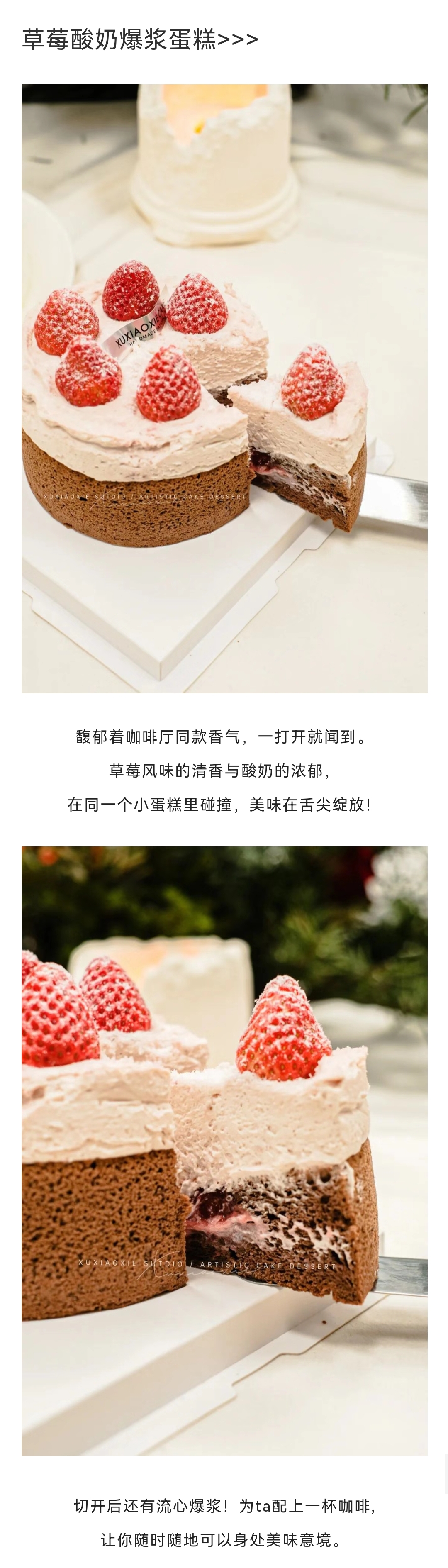 【草莓屋】草莓酸奶奶油爆浆(咖啡可可蛋糕胚?