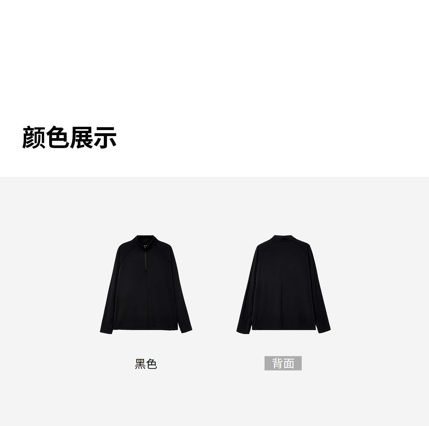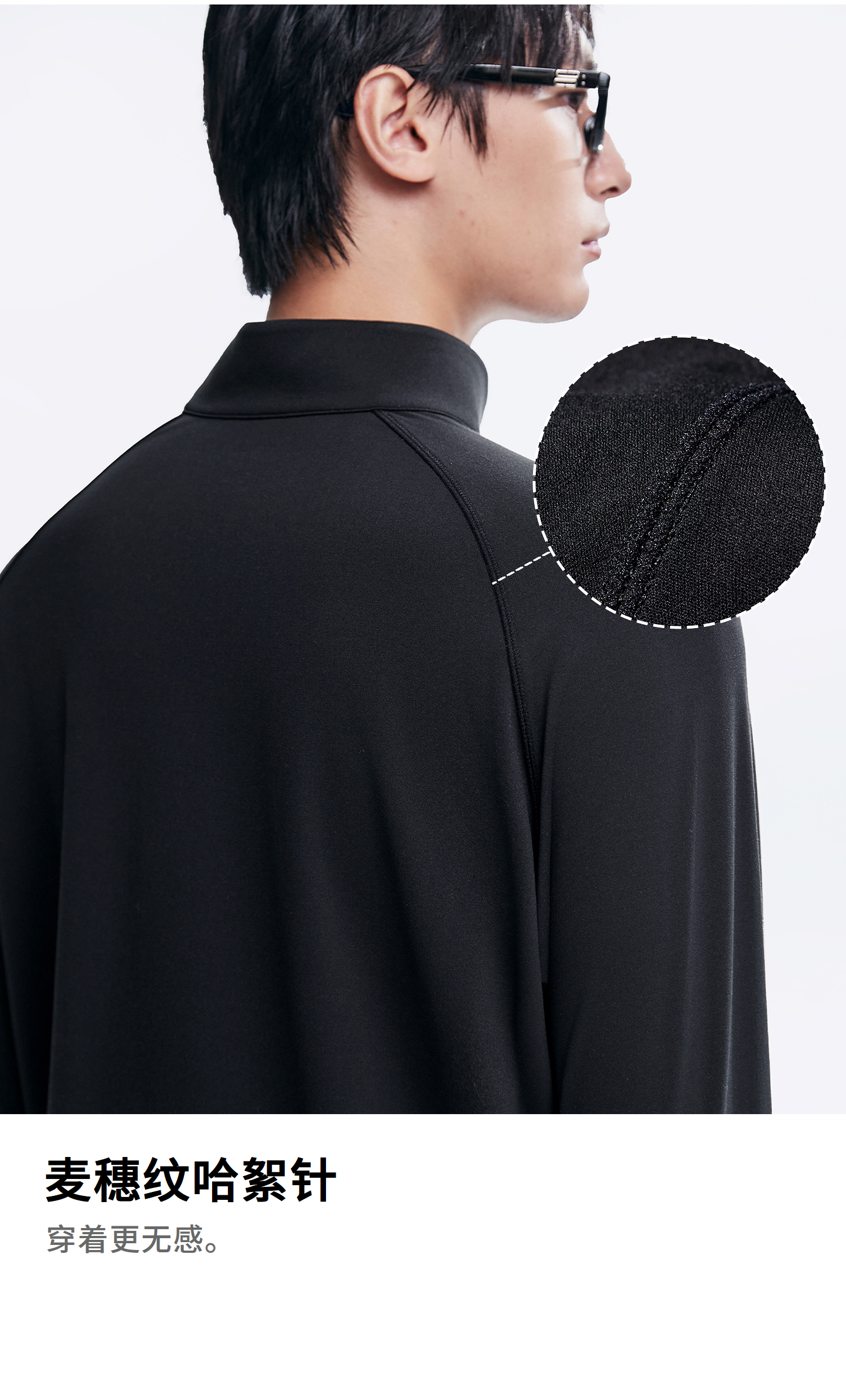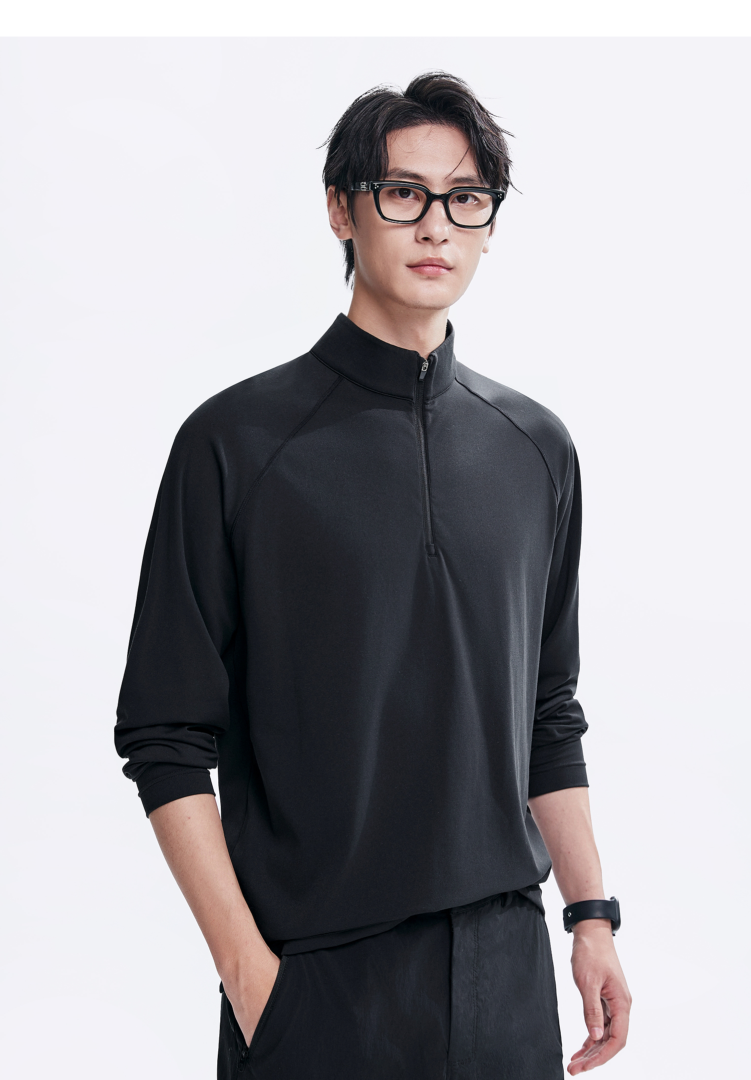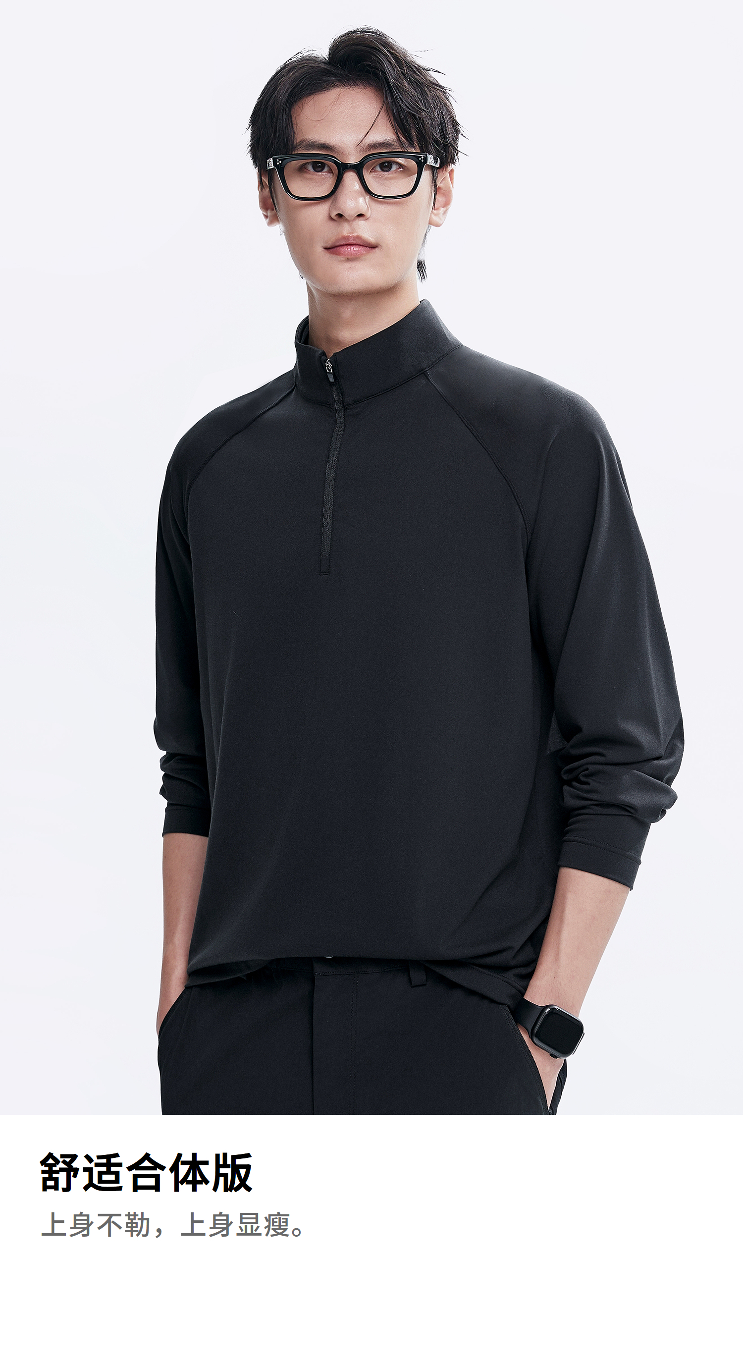 棉仓366801011-尼龙66立领半开襟长袖T恤男 秋季运动打底衫磨毛T恤