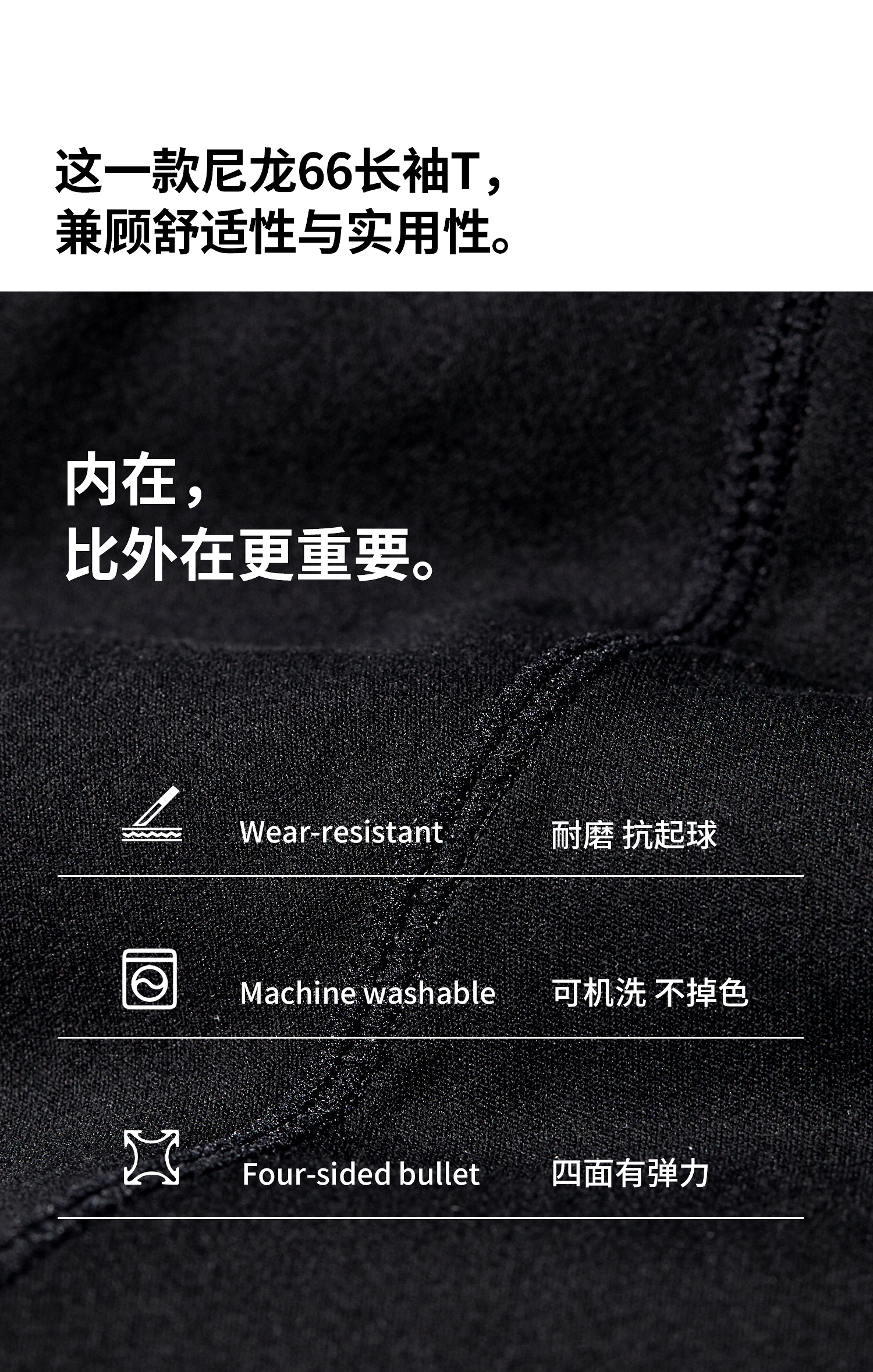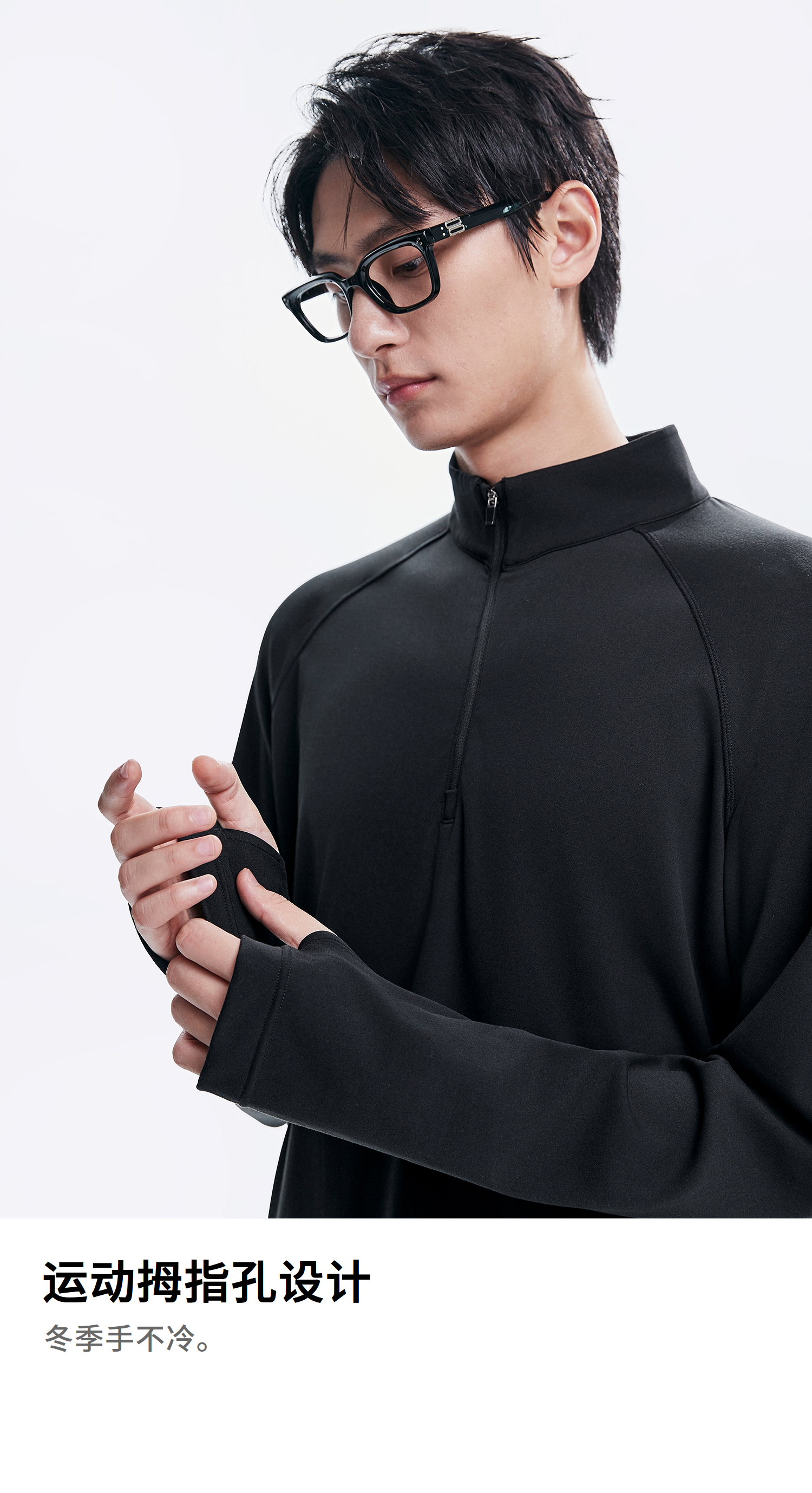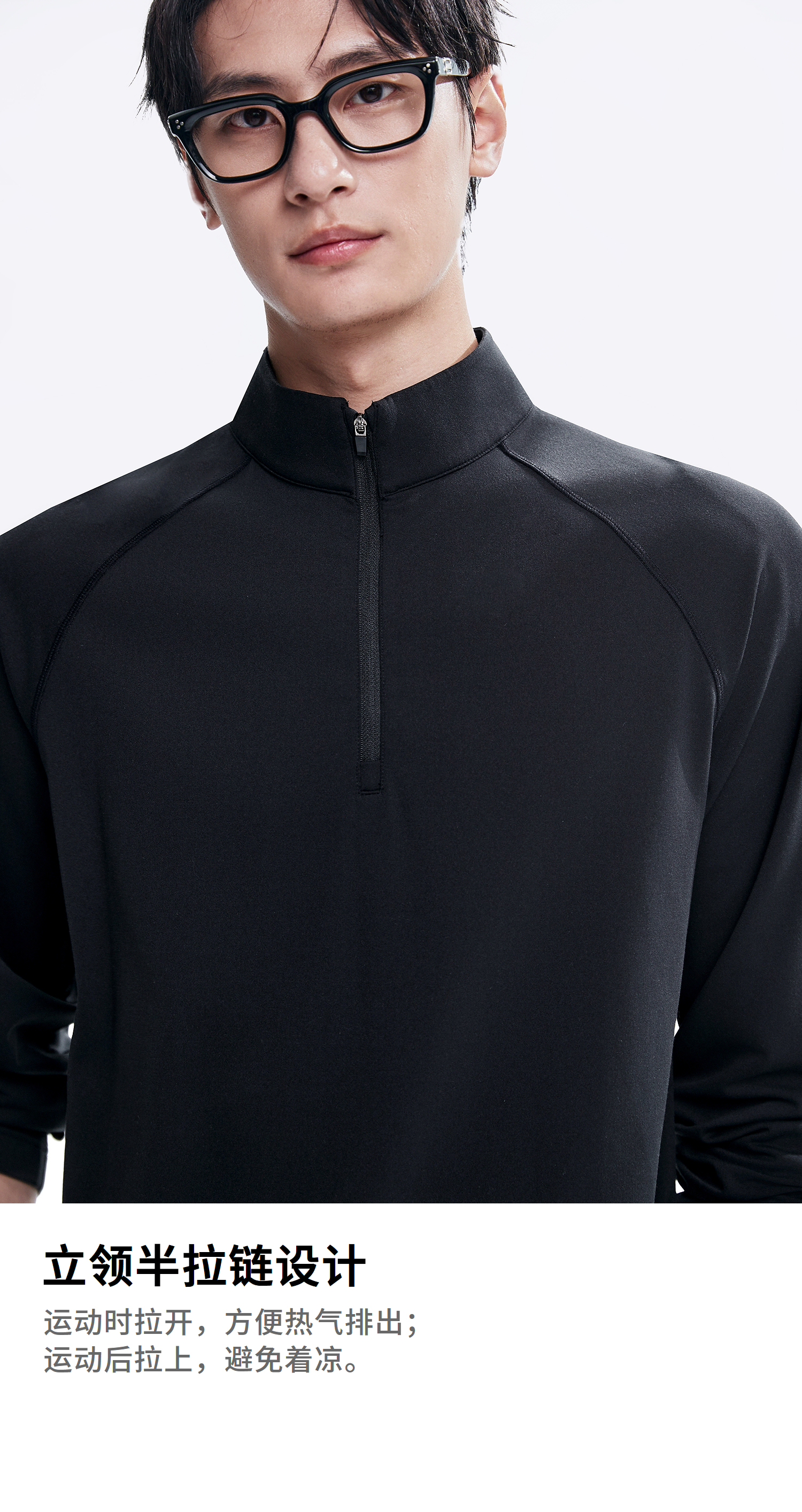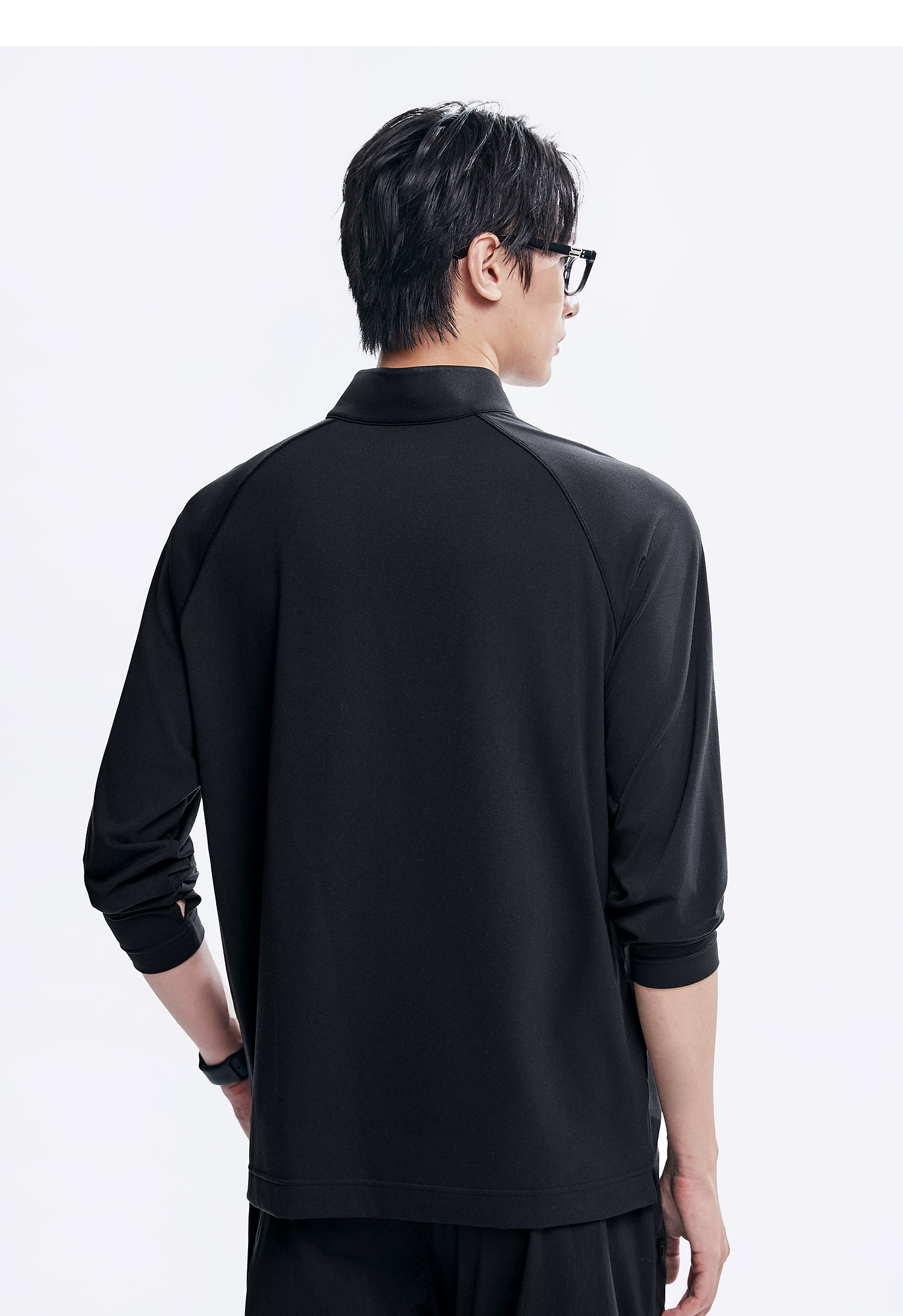 棉仓366801011-尼龙66立领半开襟长袖T恤男 秋季运动打底衫磨毛T恤