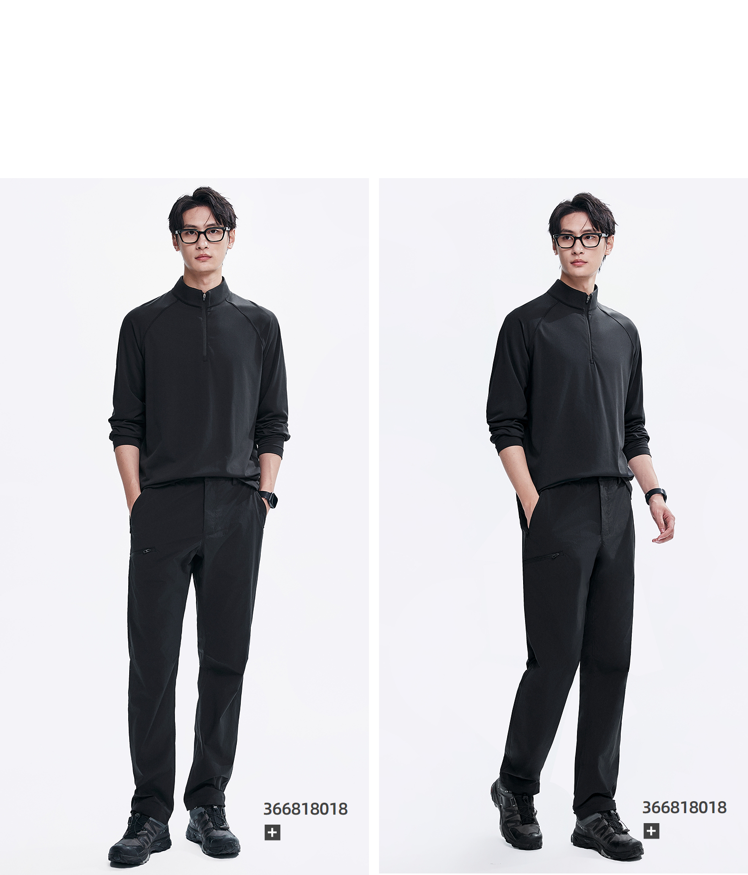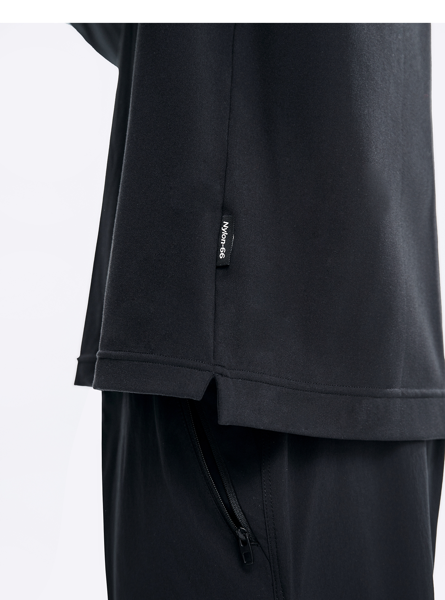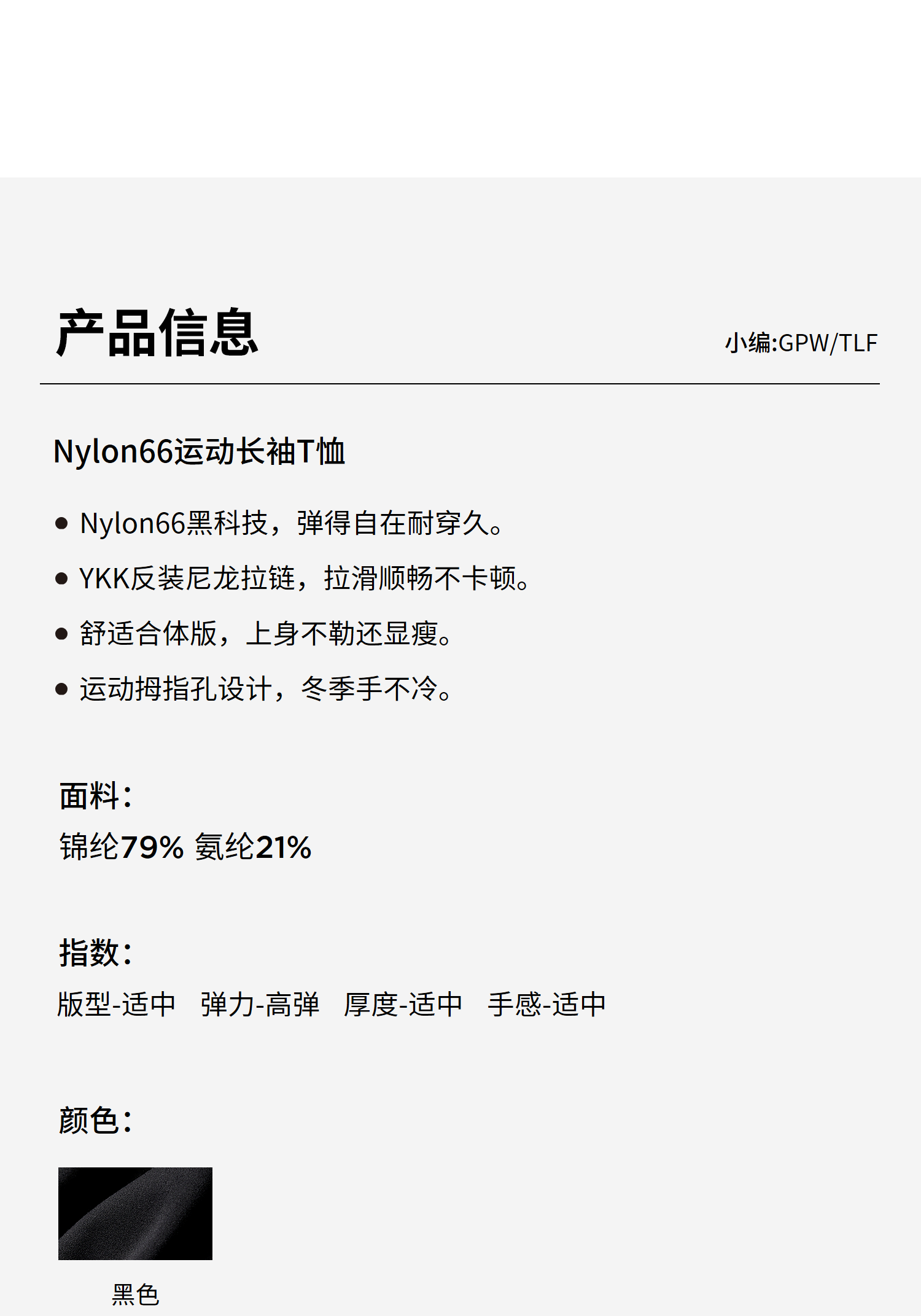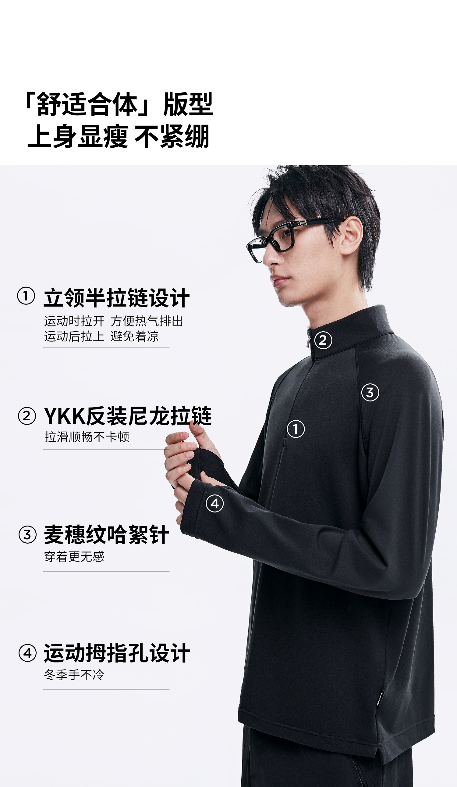 棉仓366801011-尼龙66立领半开襟长袖T恤男 秋季运动打底衫磨毛T恤