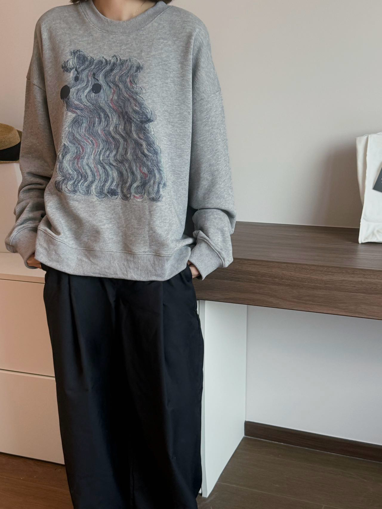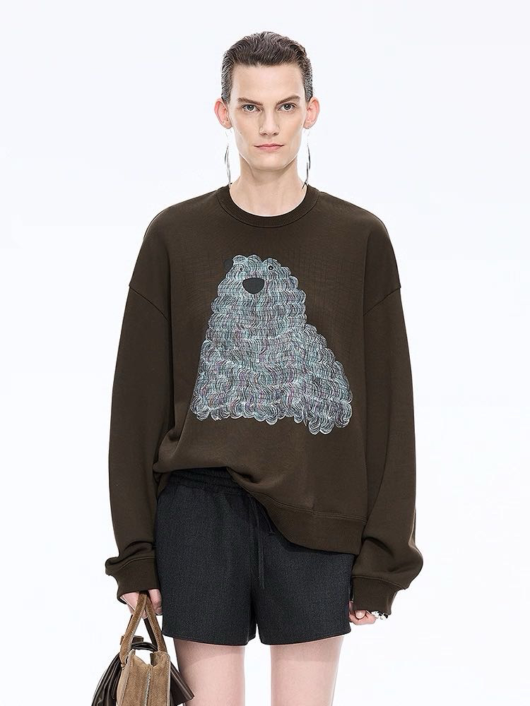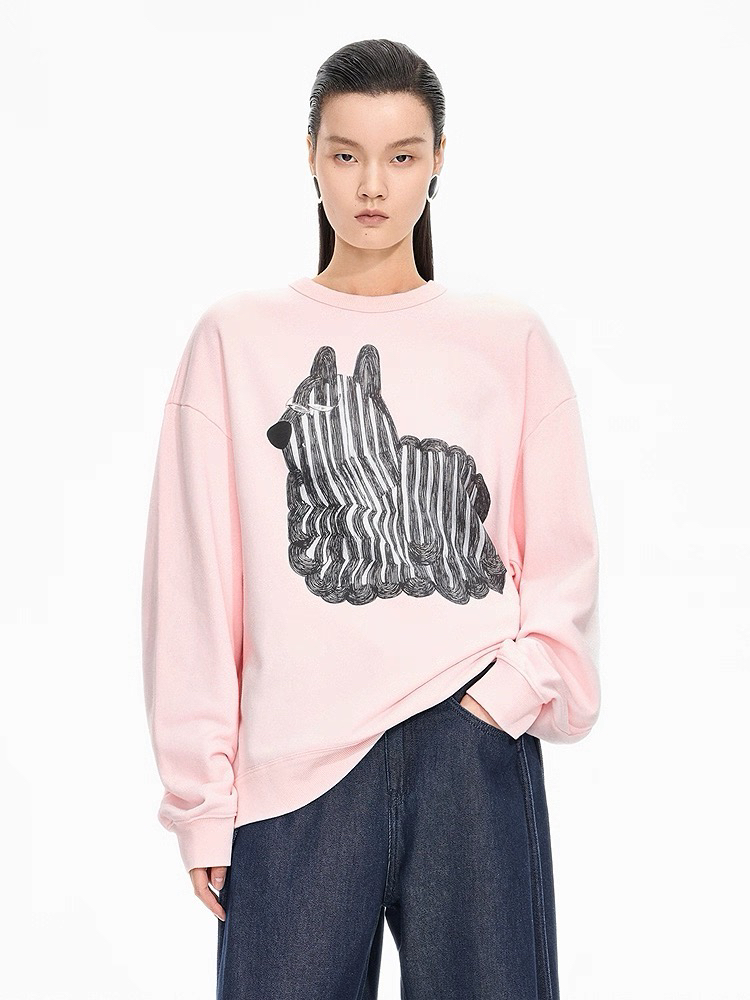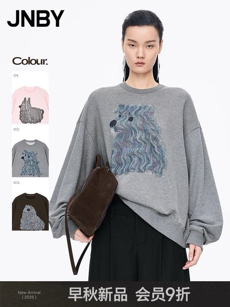 JNBY 松弛感 抽象 潦草小狗 图案 宽松套头卫衣