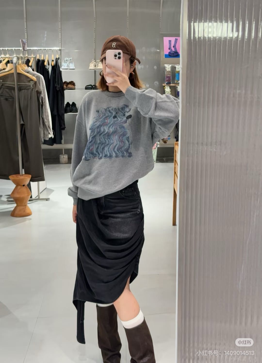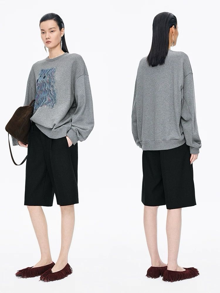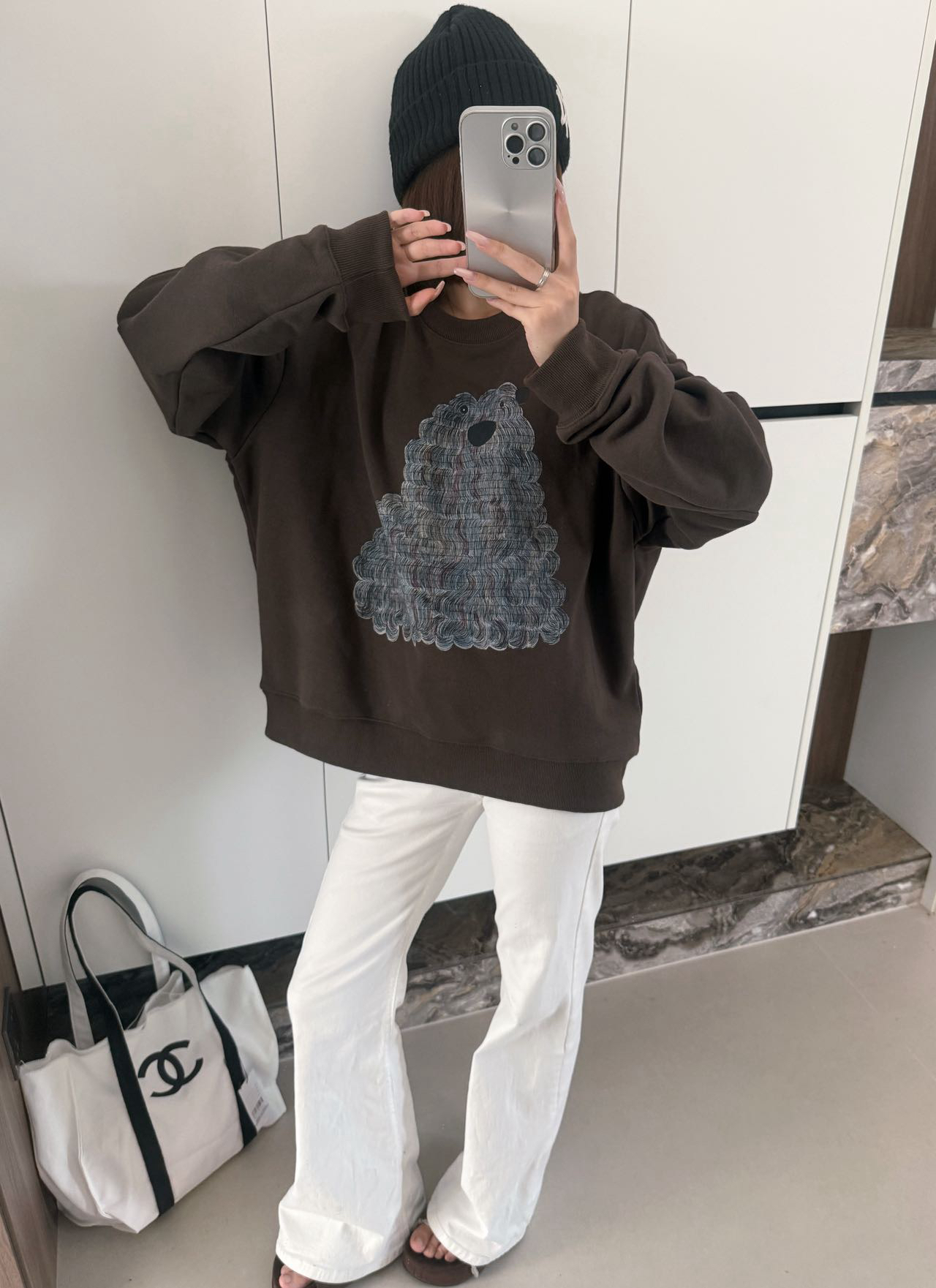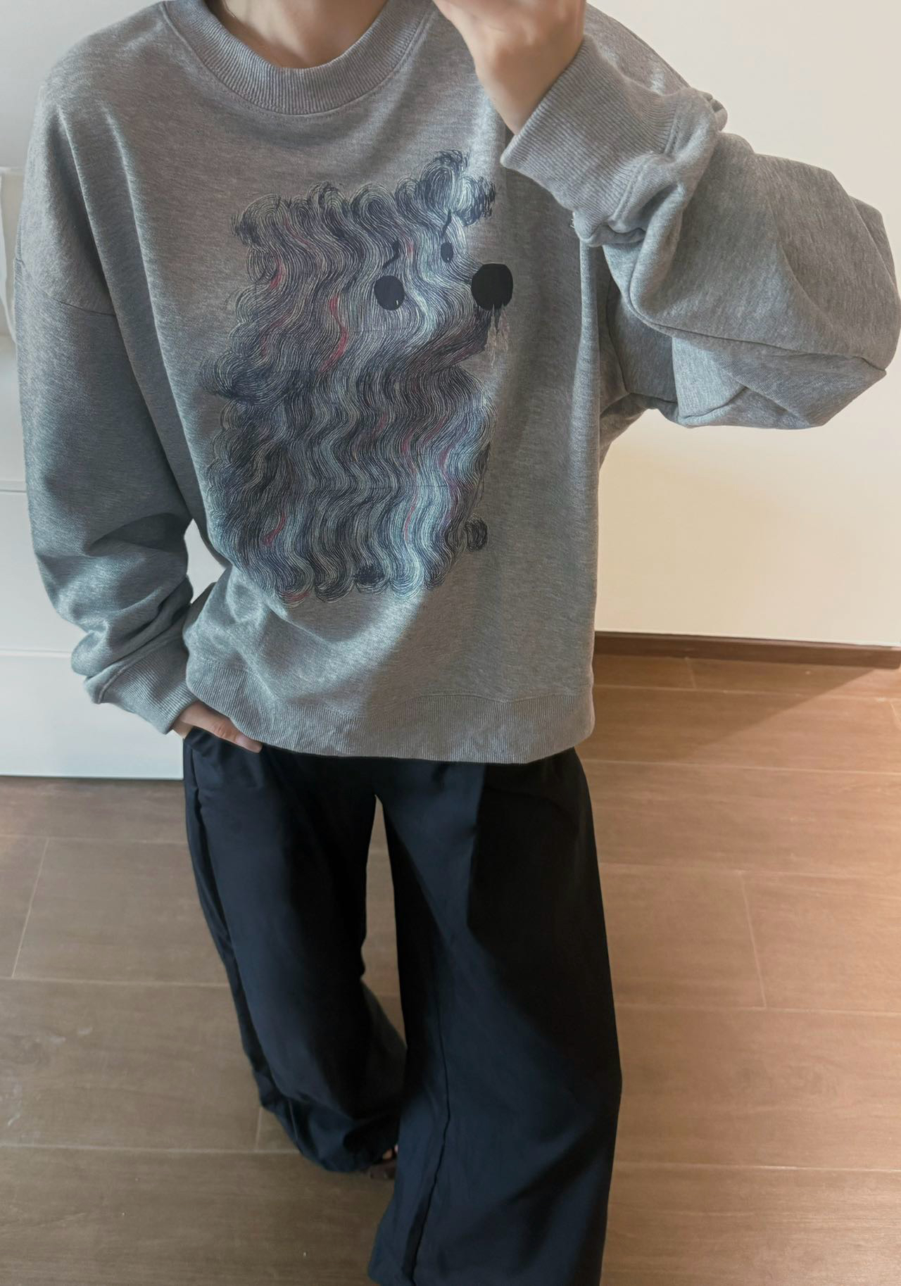 JNBY 松弛感 抽象 潦草小狗 图案 宽松套头卫衣