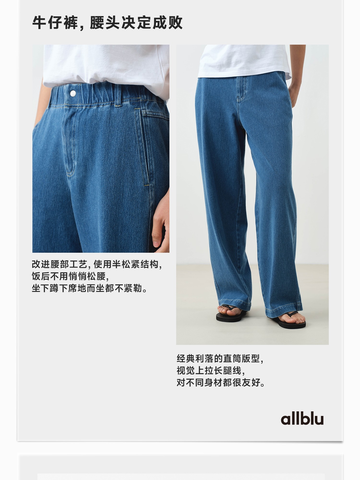 【春Vol.3】allblu"久坐也不勒腰"25春夏【女士舒服牛仔直筒裤】|透气百搭长裤ZY