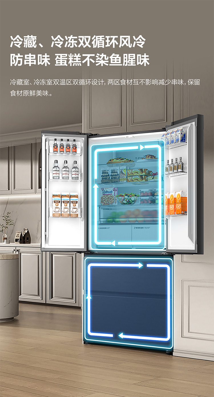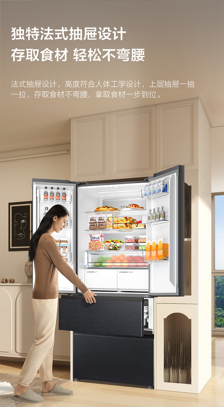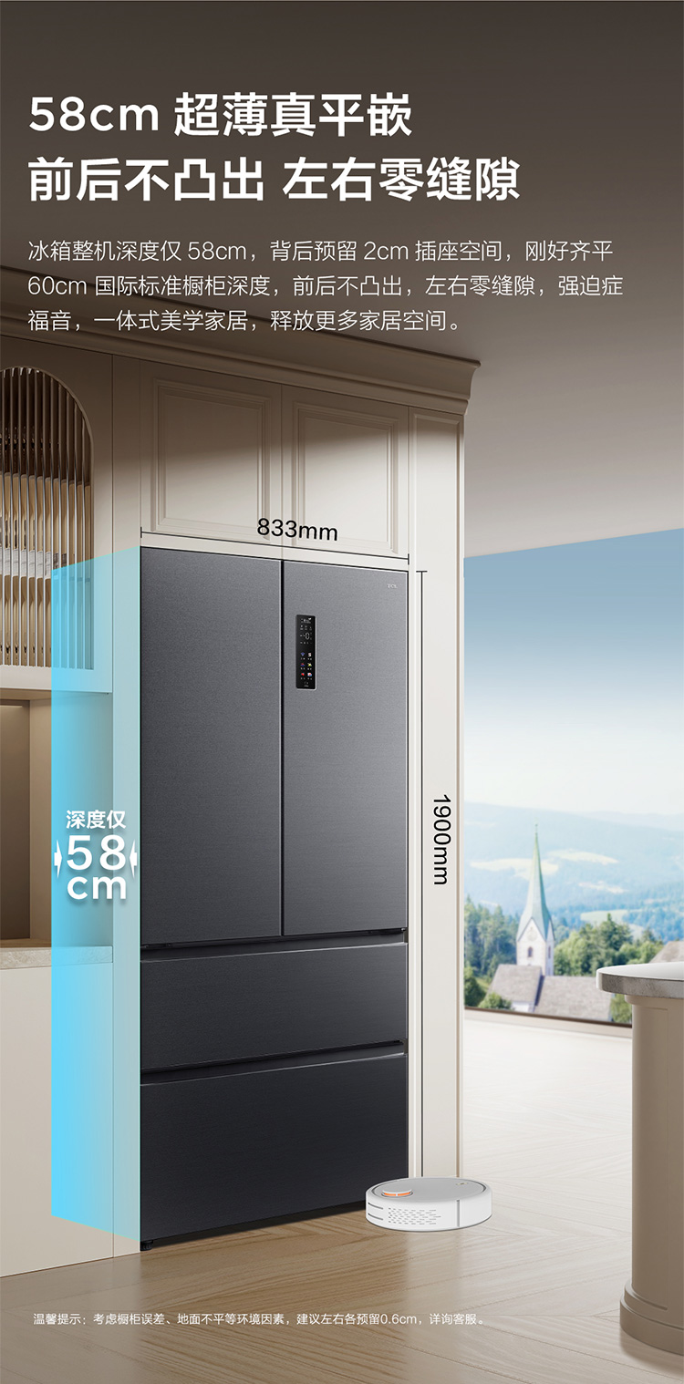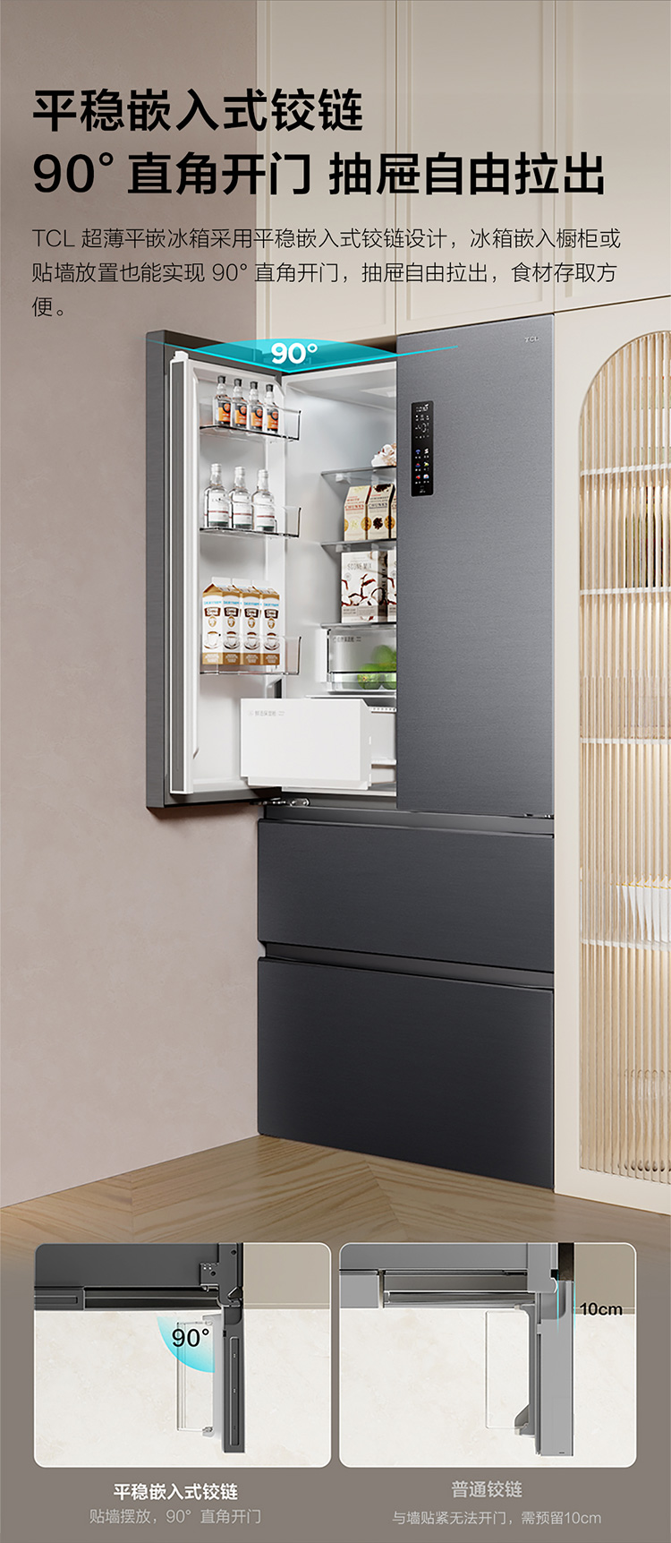 TCL大无界469升T9法式多门四开门58cm超薄零嵌入式底部散热双净味冰箱 R469T9-DQ
