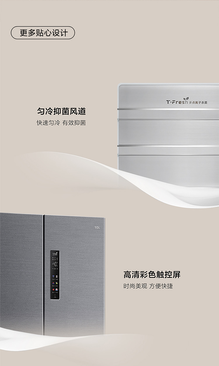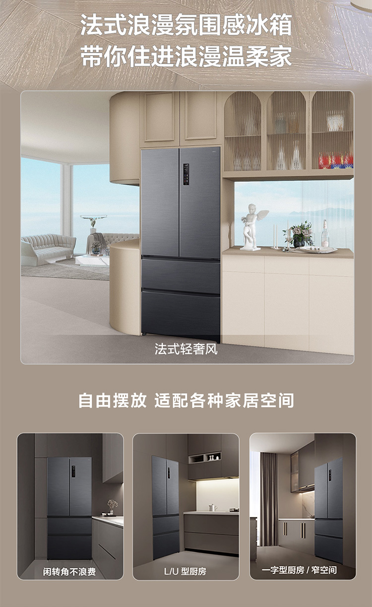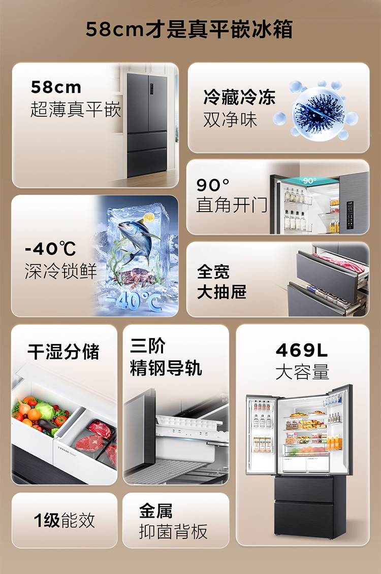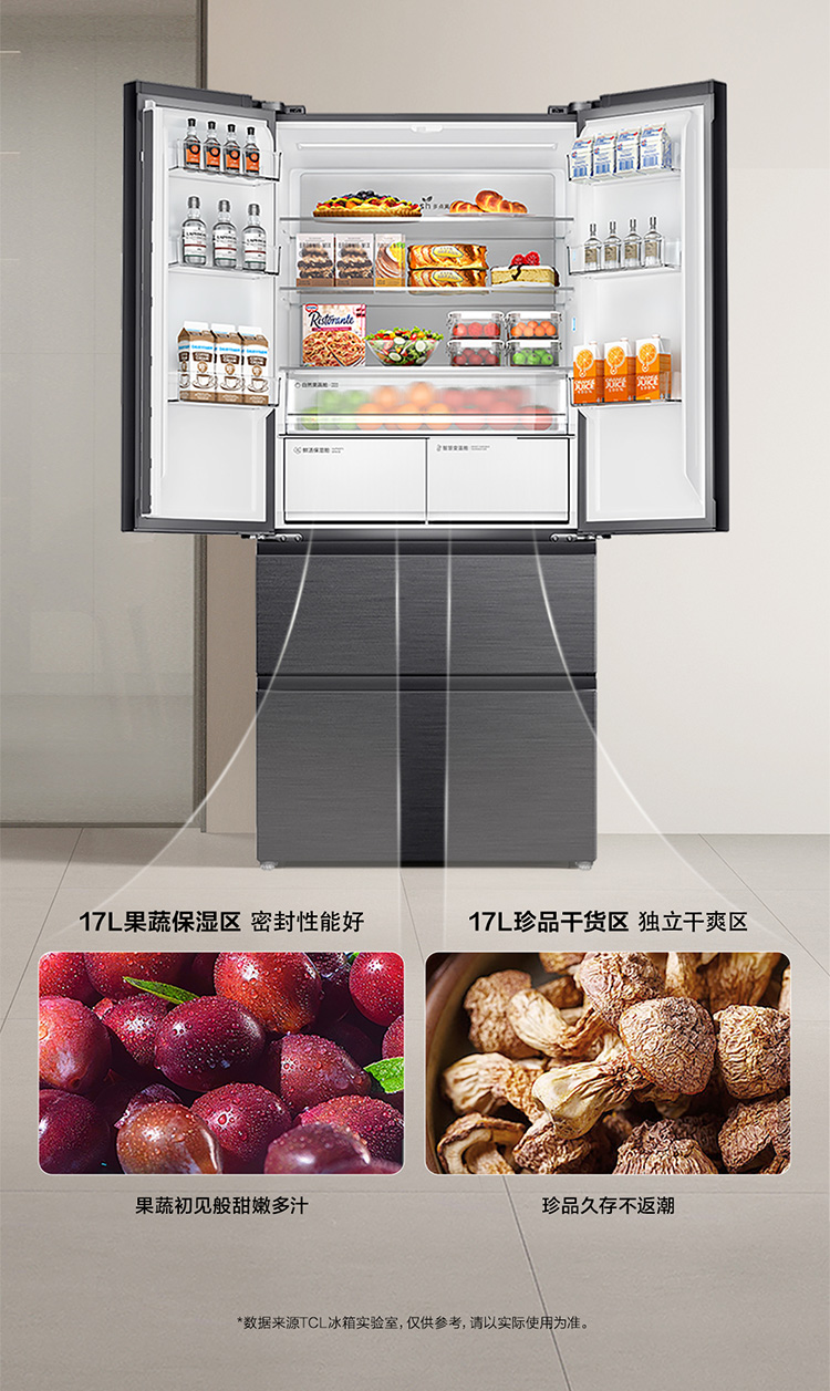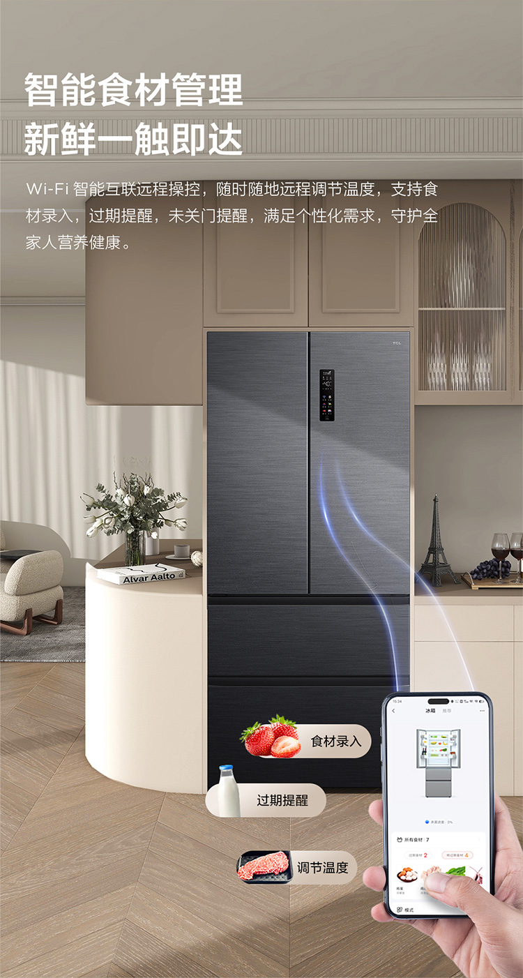 TCL大无界469升T9法式多门四开门58cm超薄零嵌入式底部散热双净味冰箱 R469T9-DQ