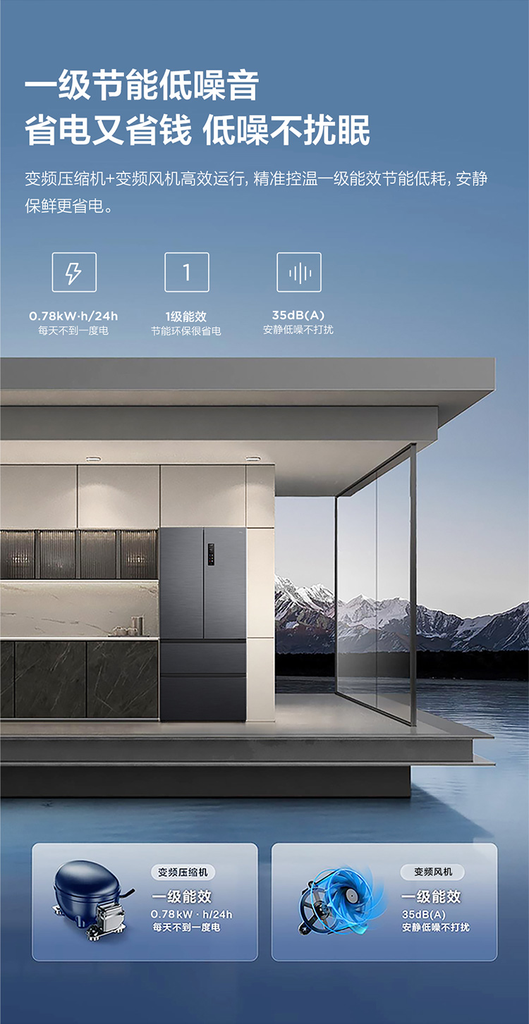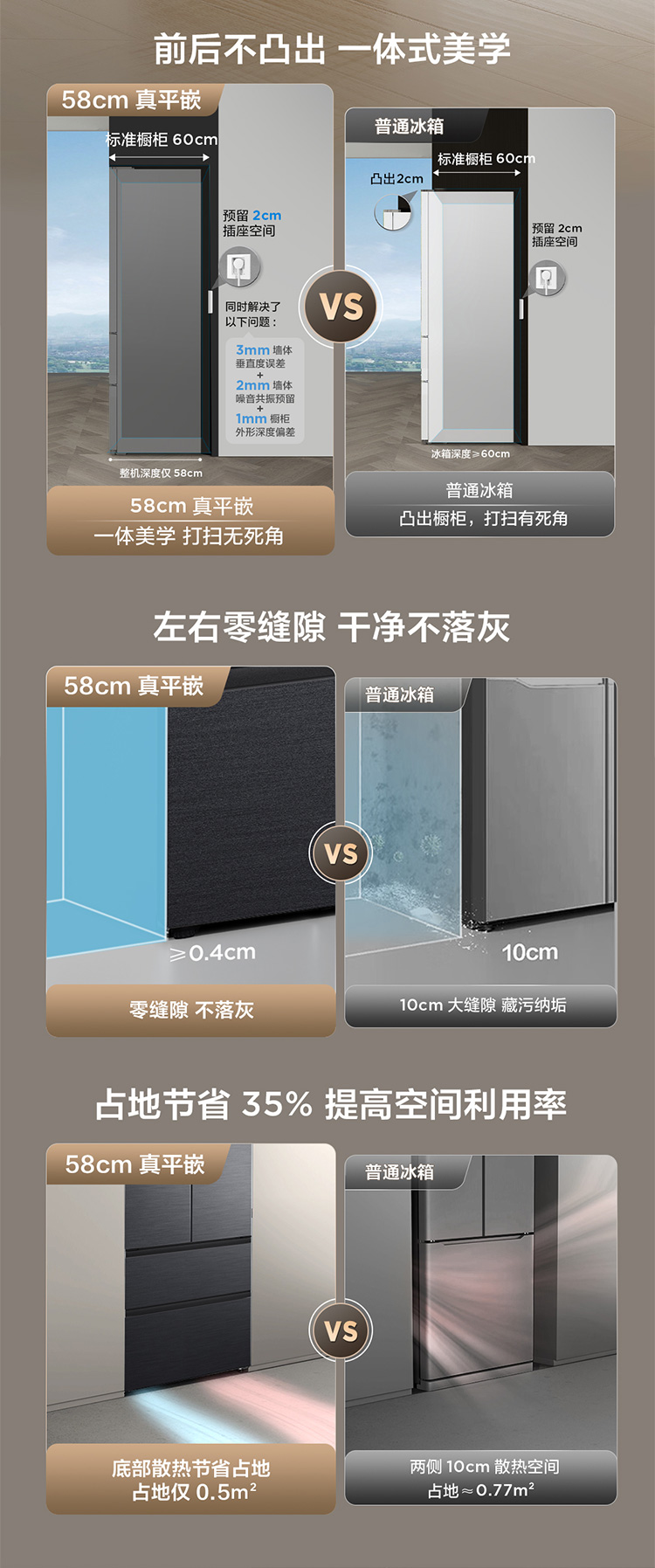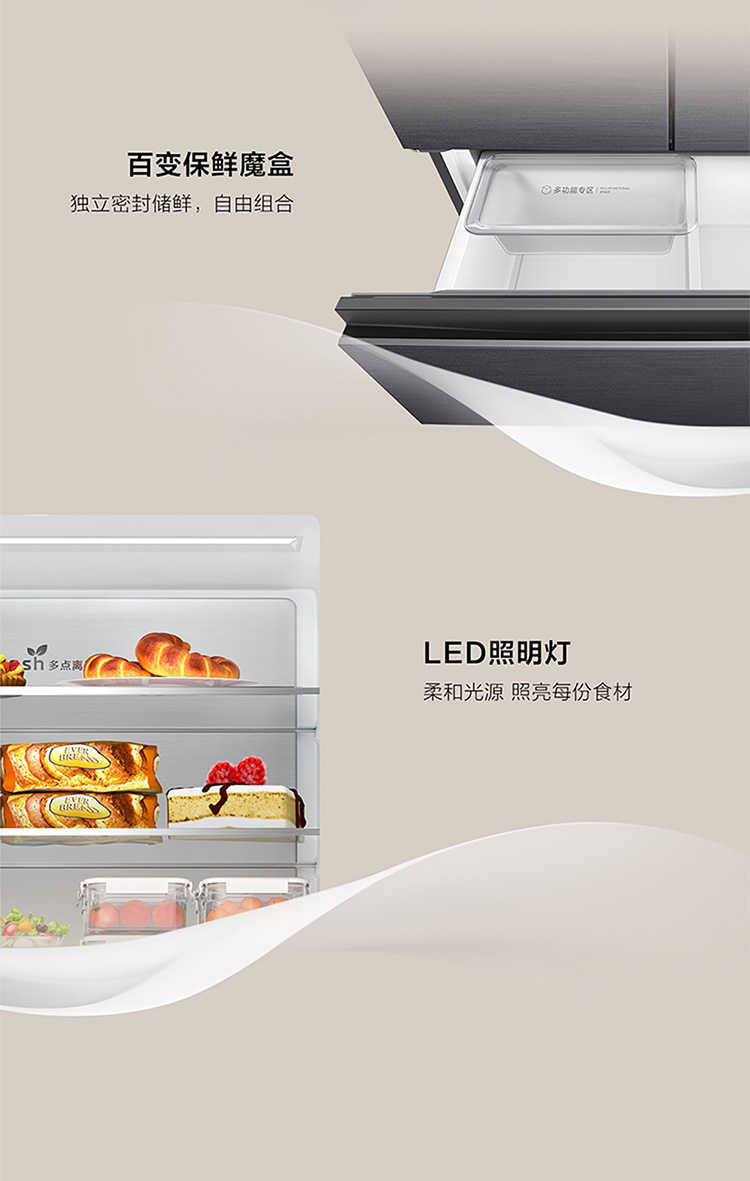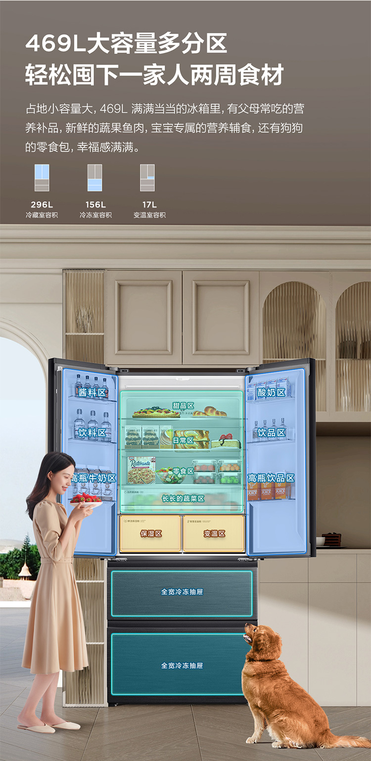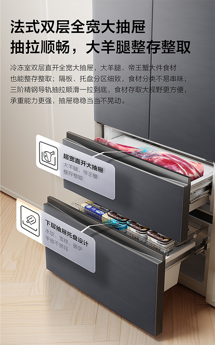 TCL大无界469升T9法式多门四开门58cm超薄零嵌入式底部散热双净味冰箱 R469T9-DQ