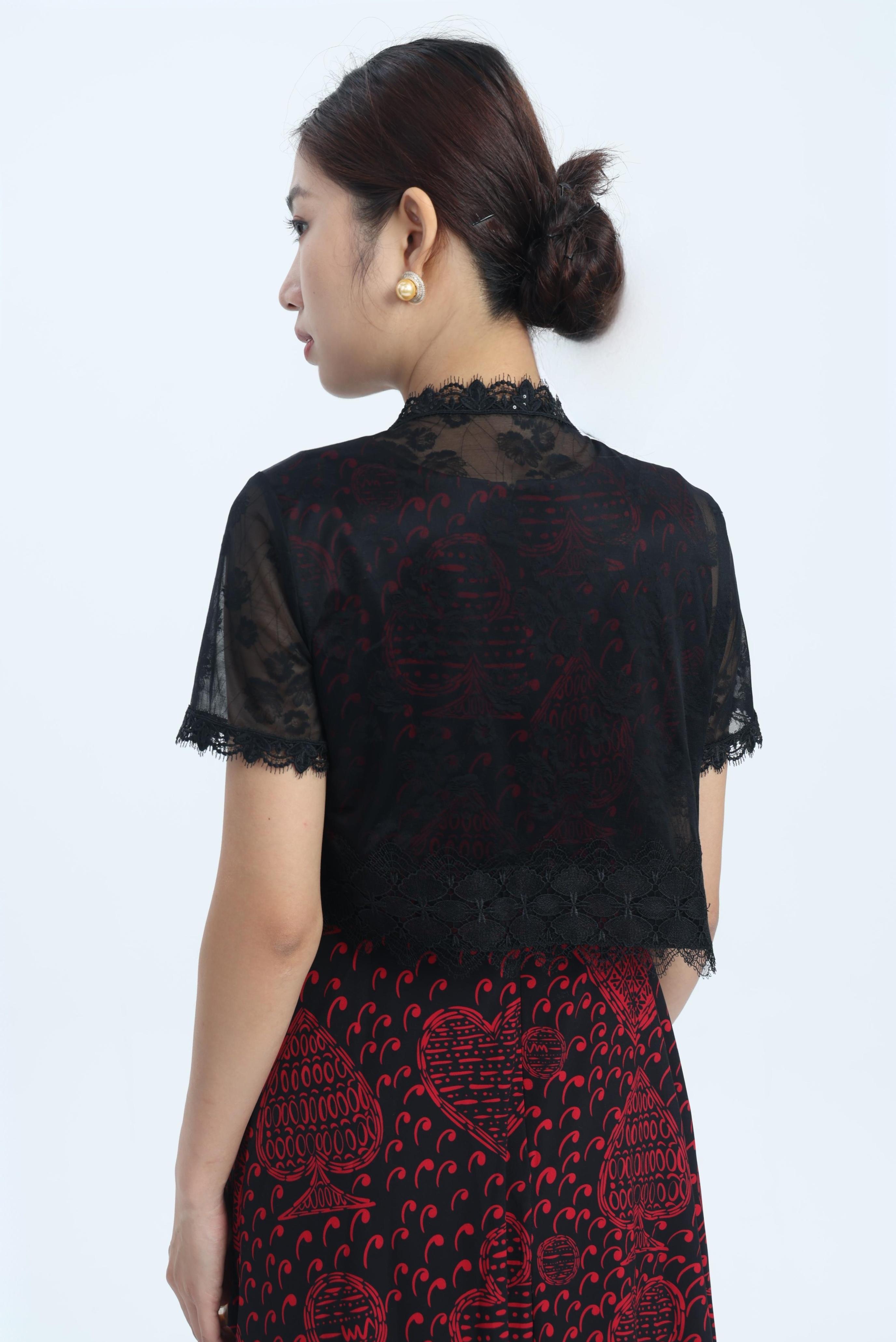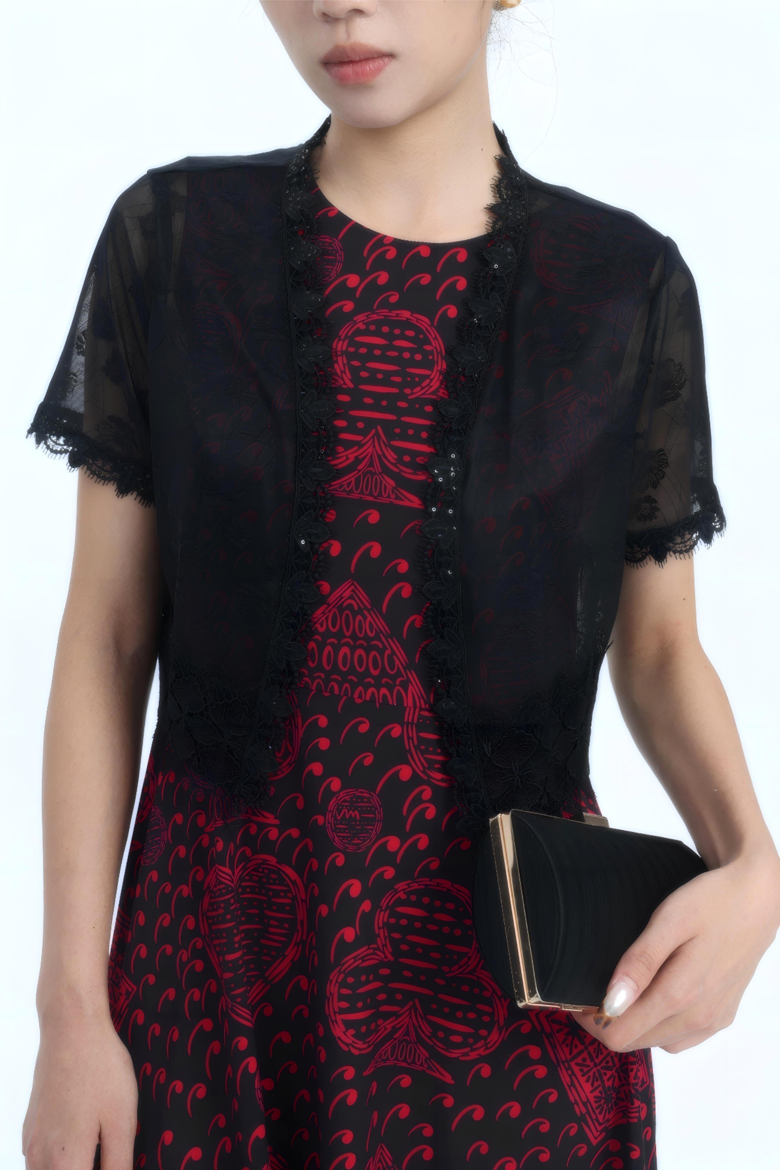 伯妮斯茵 | 温柔仙气 白色蕾丝网纱外披 短袖开衫设计 精致花边装饰 夏日防晒款 蕾丝花边透视短款小坎肩 SZ2A03-皓、漆黑